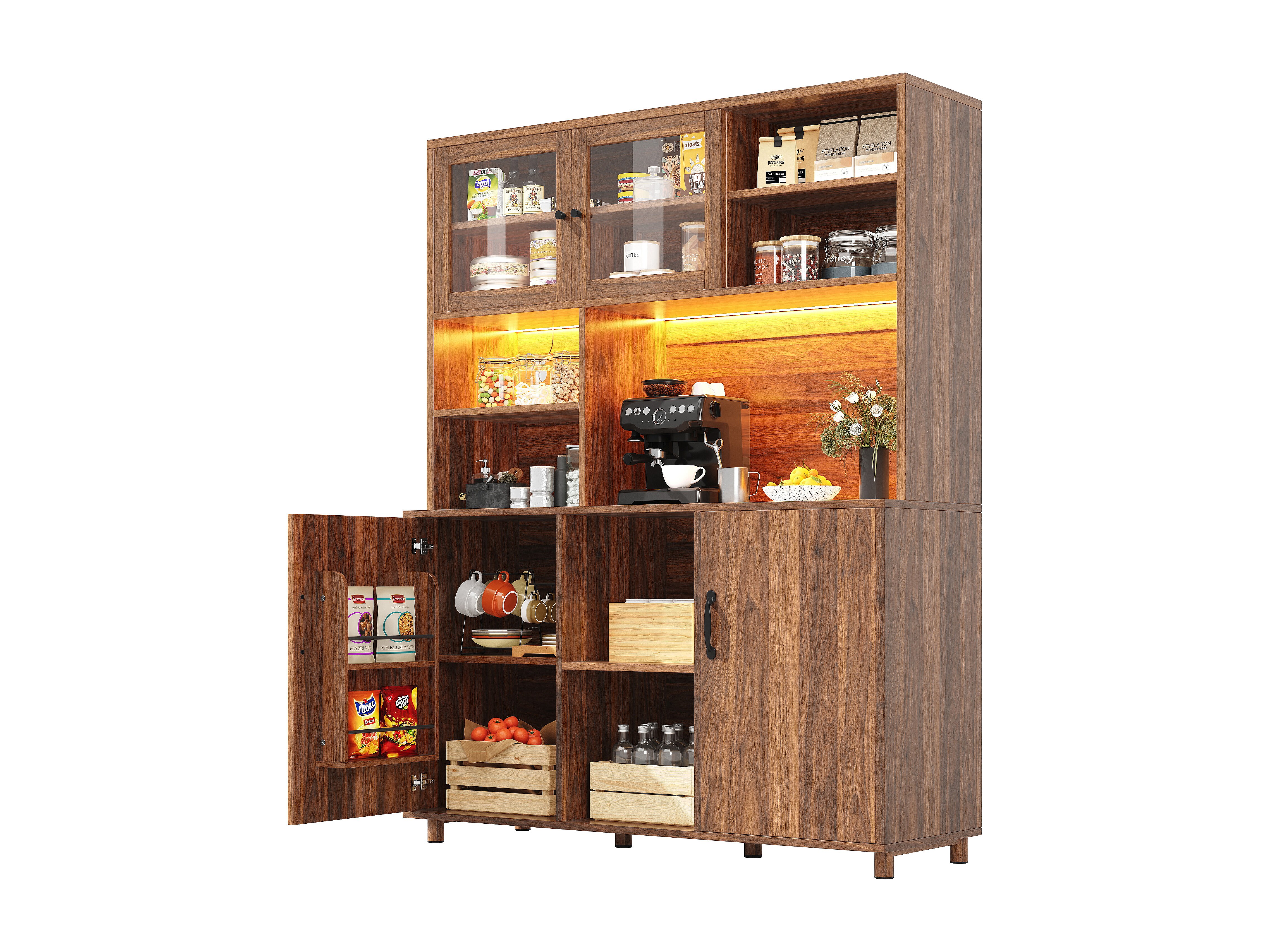 Buffet de cuisine hauts pour le salon - 120 x 40 x 185cm - avec 4 portes + Led - style rétro - MDF + verre - naturel