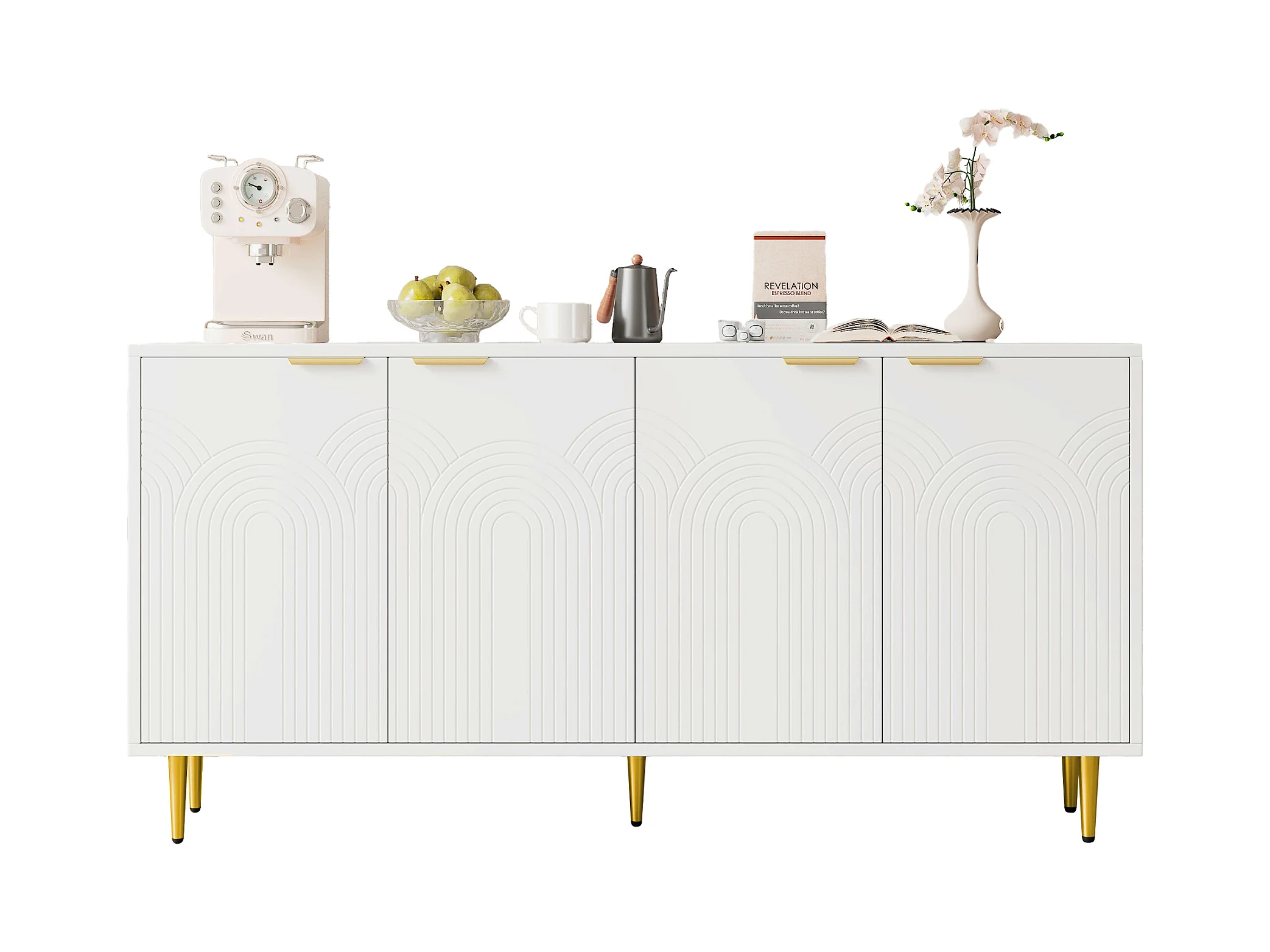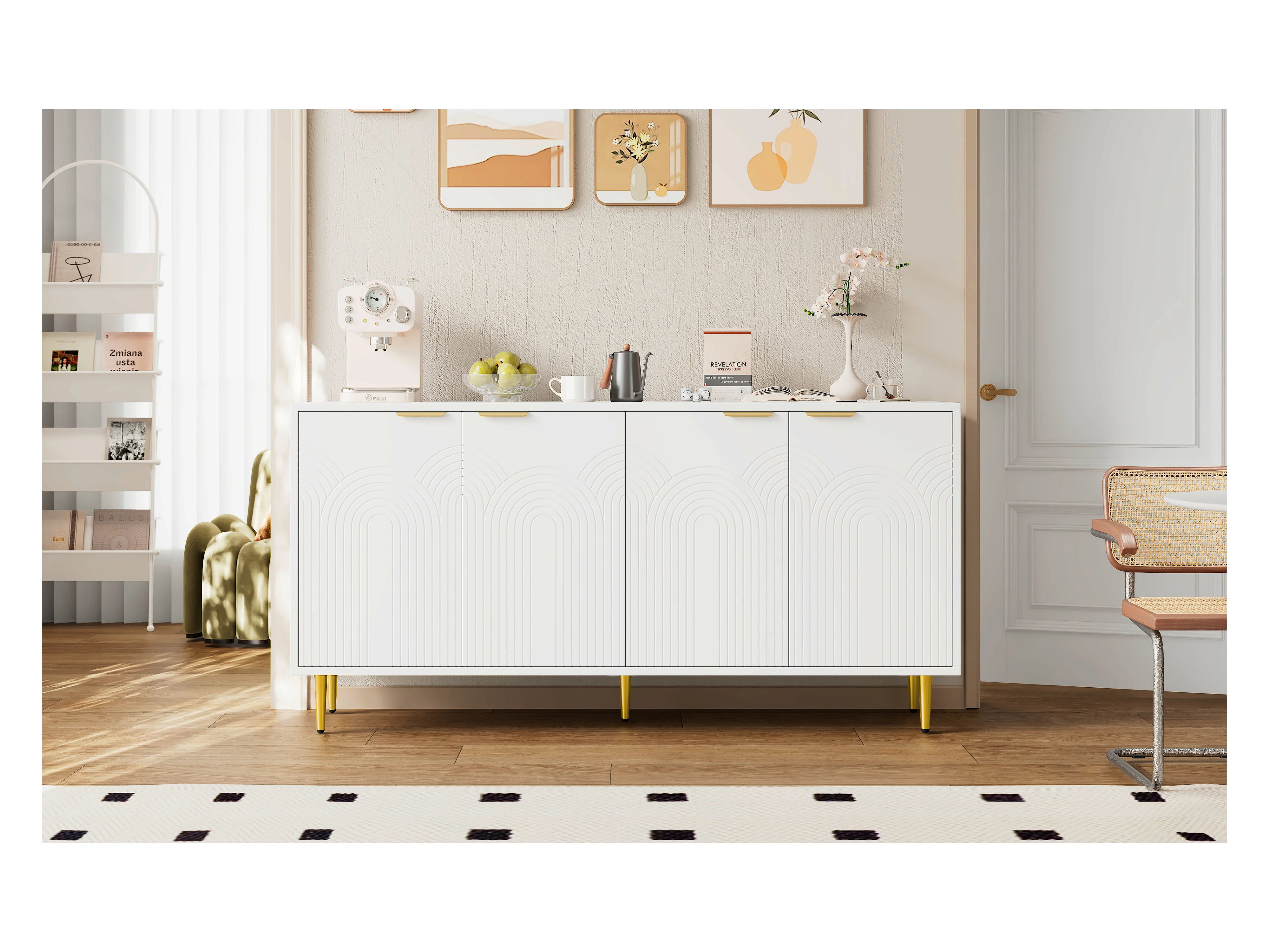 Buffet de salon - 160 x 40 x 80 cm - avec 4 portes + pieds brillants - aggloméré - blanc