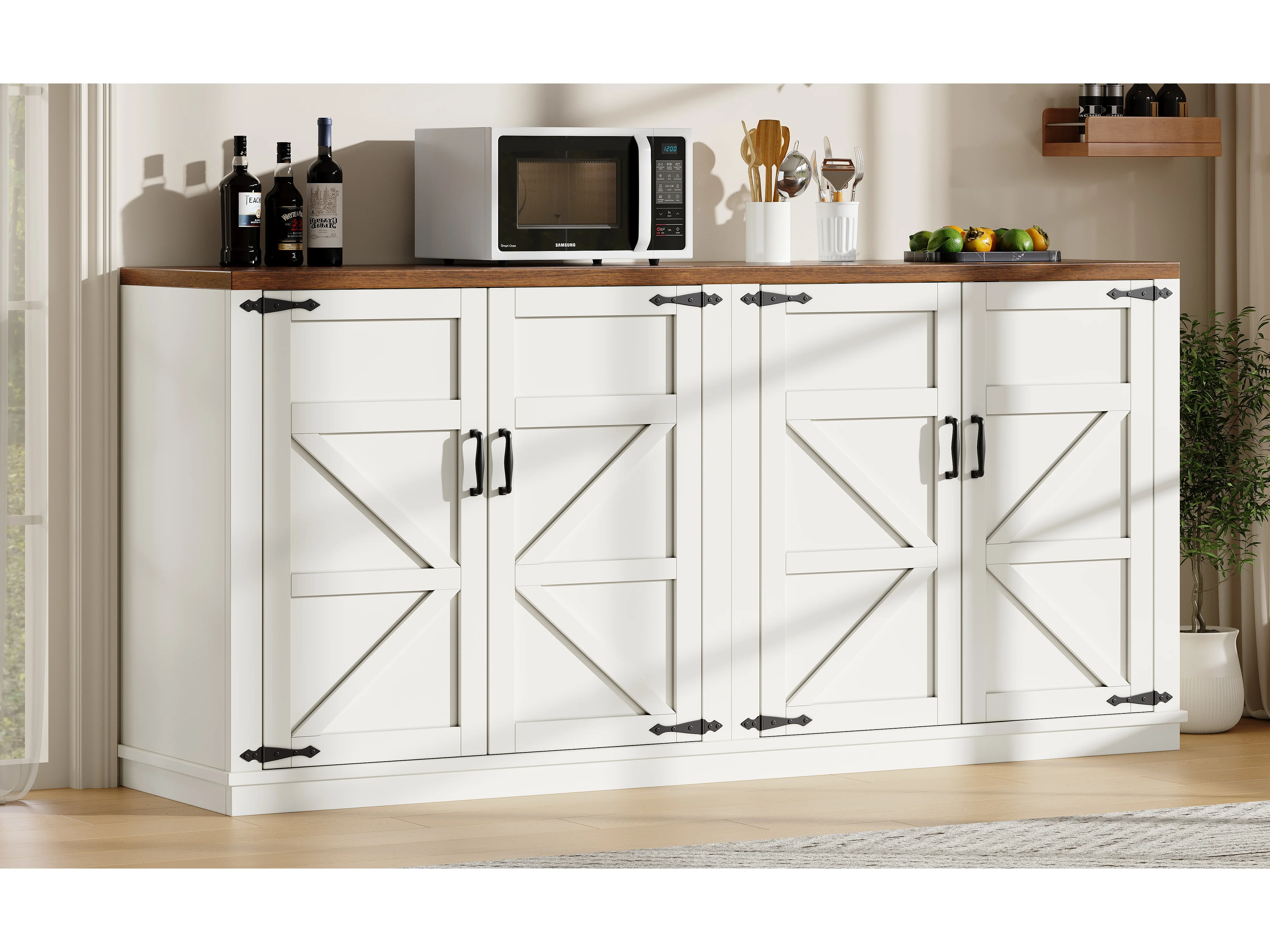Buffet de style campagnard - 160 x 40 x 85 cm - avec 4 portes - 2 étagères réglables - MDF + métal - blanc
