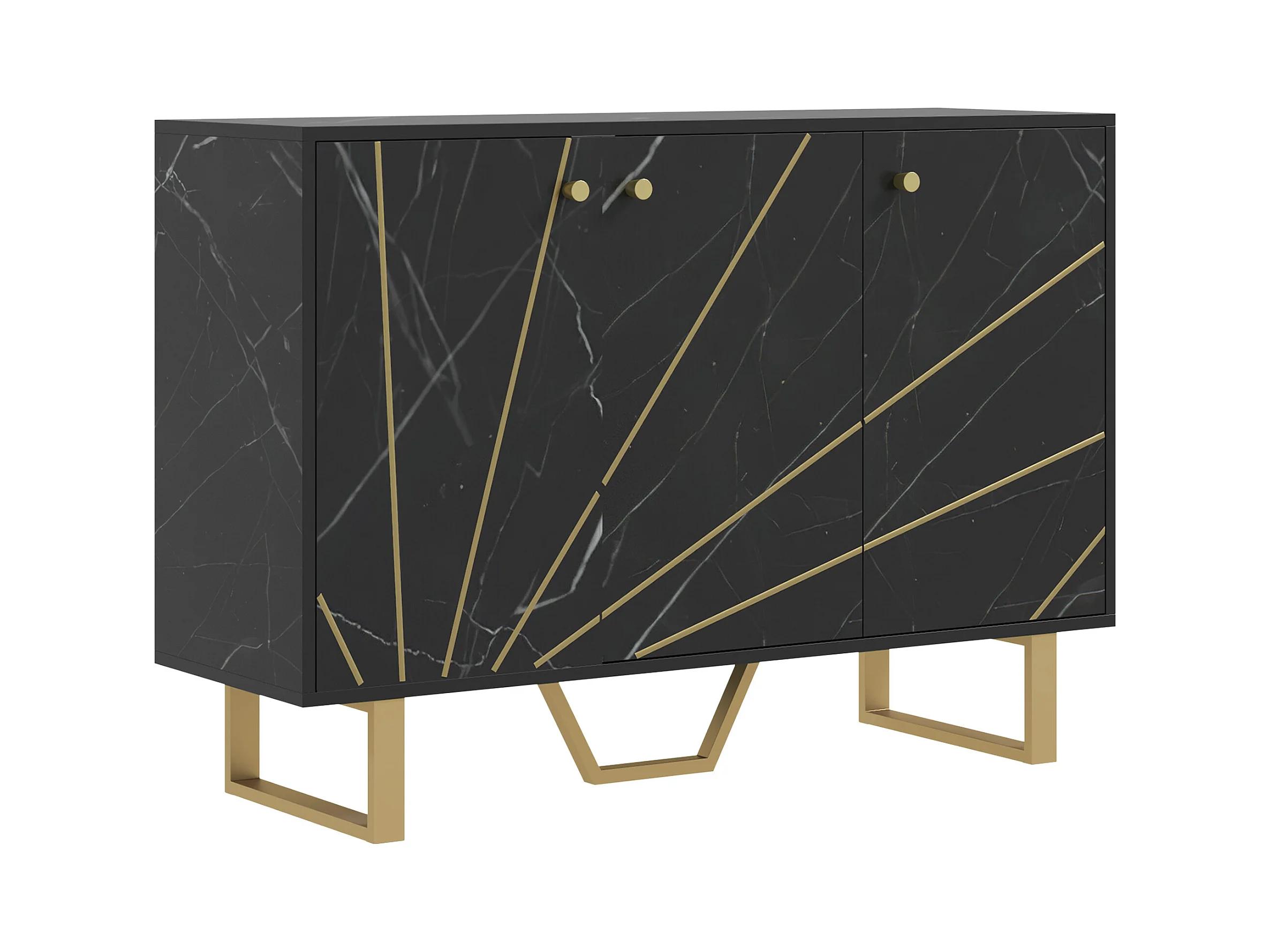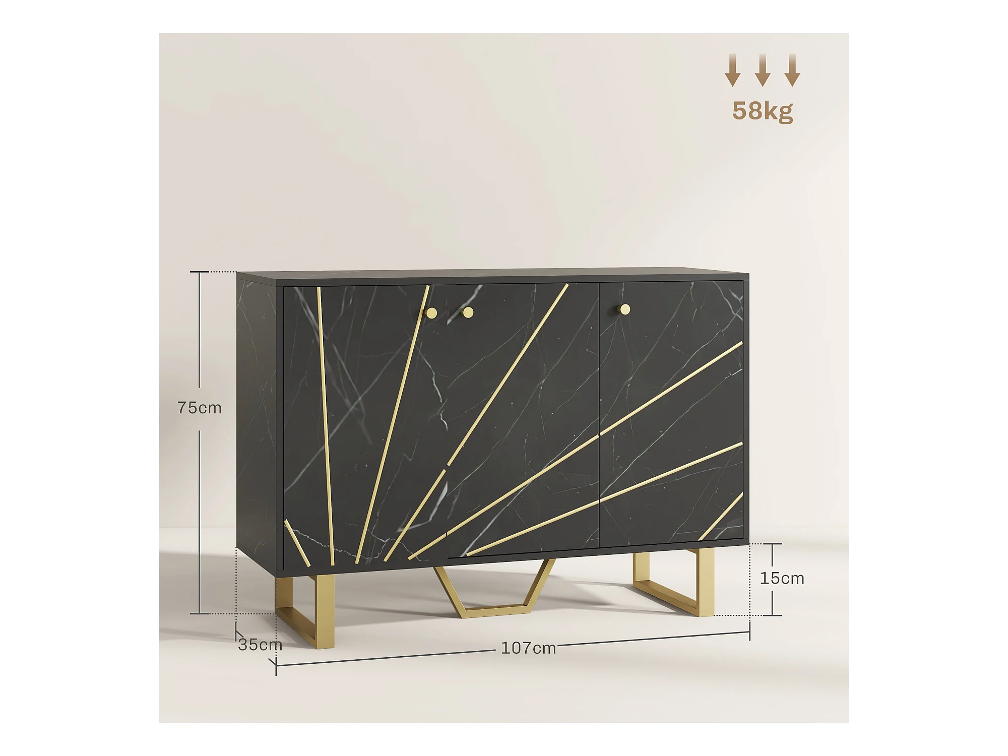 Buffet design - 3 portes, 2 étagères - dim. 107L x 35l x 75H cm - métal doré aspect marbre noir