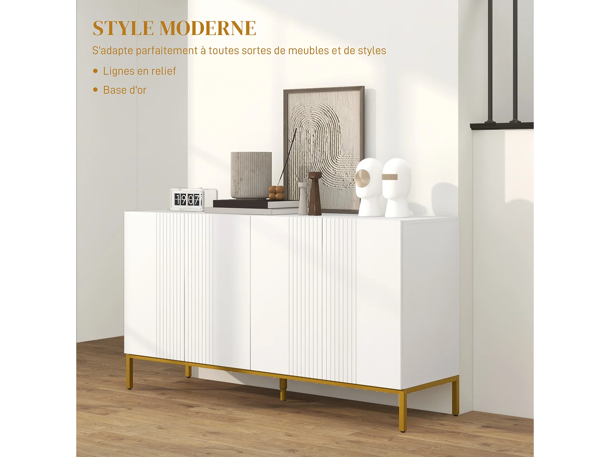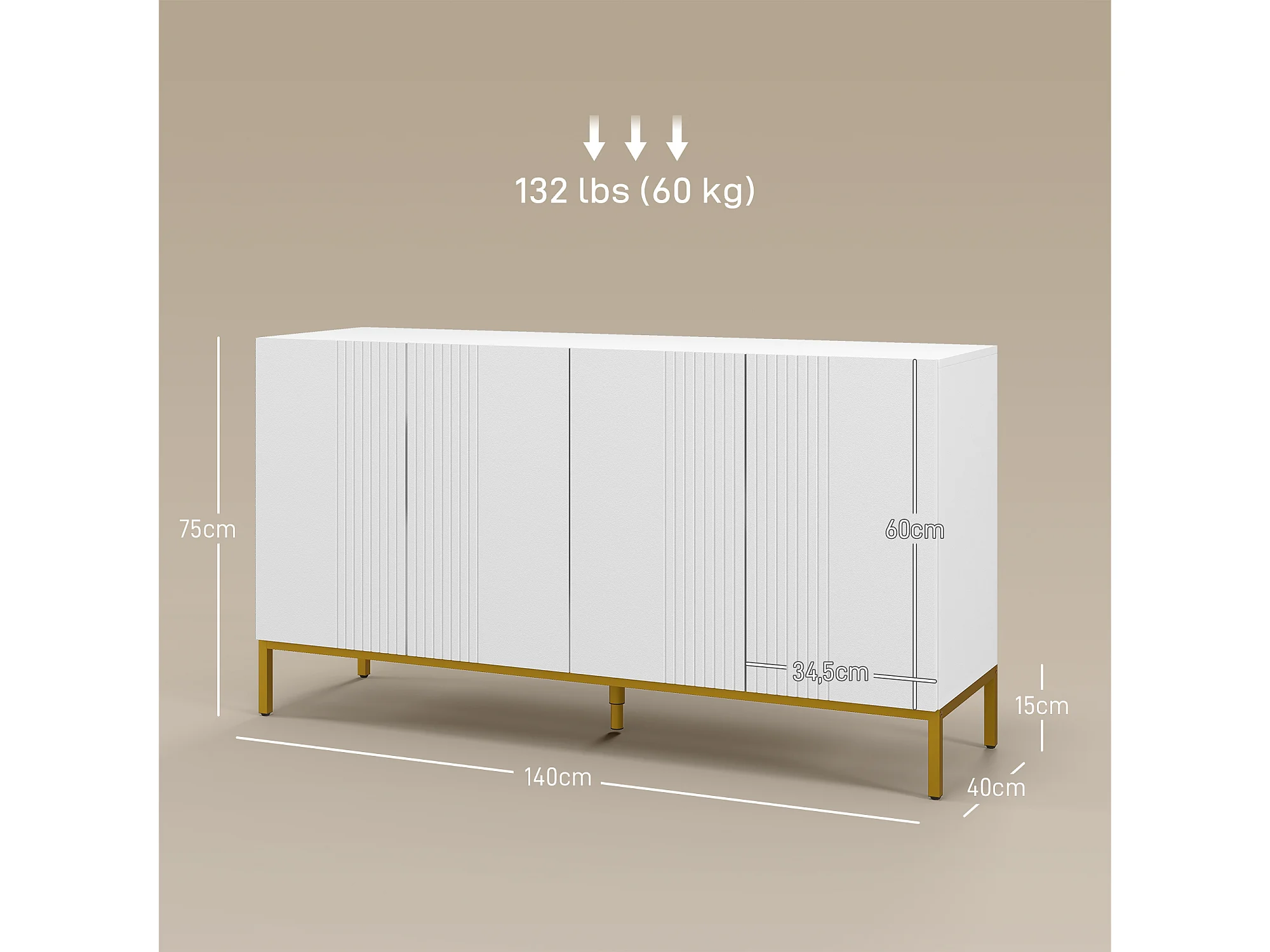 Buffet moderne 140 x 38 x 75 cm - 4 portes - Étagères réglables - Pieds en métal - MDF - Blanc