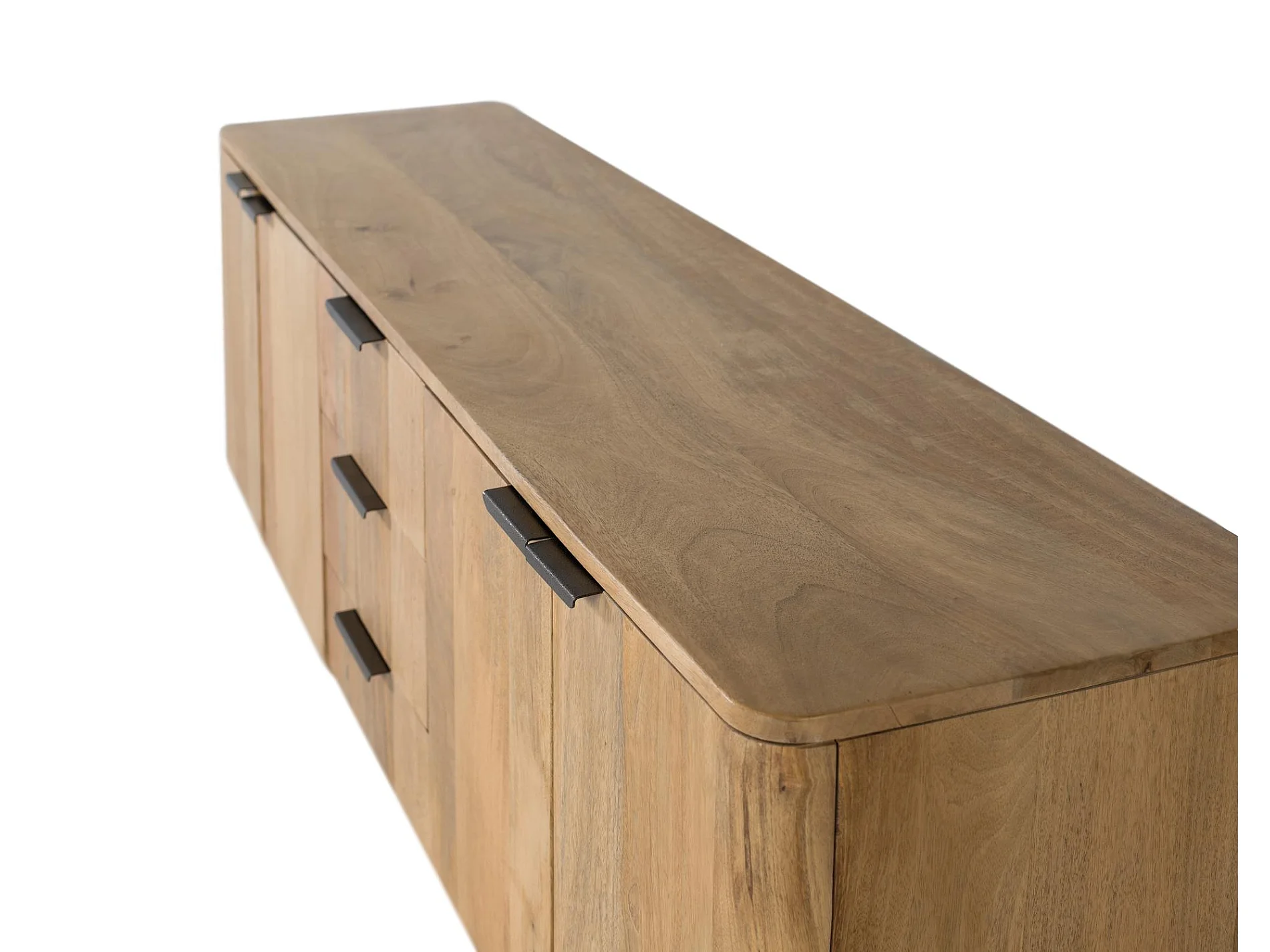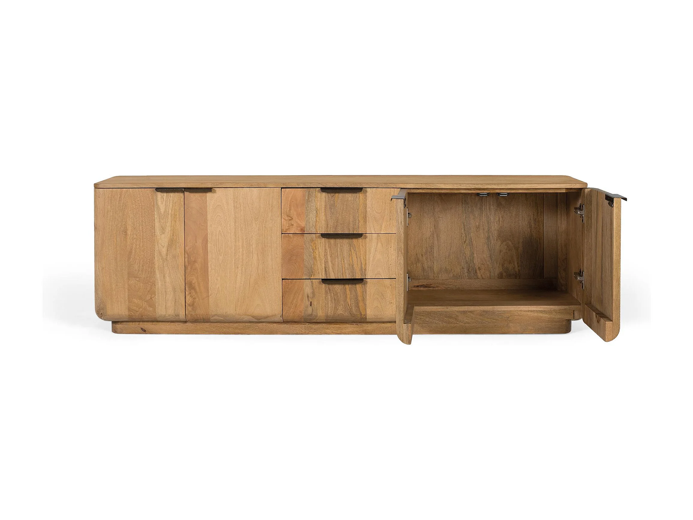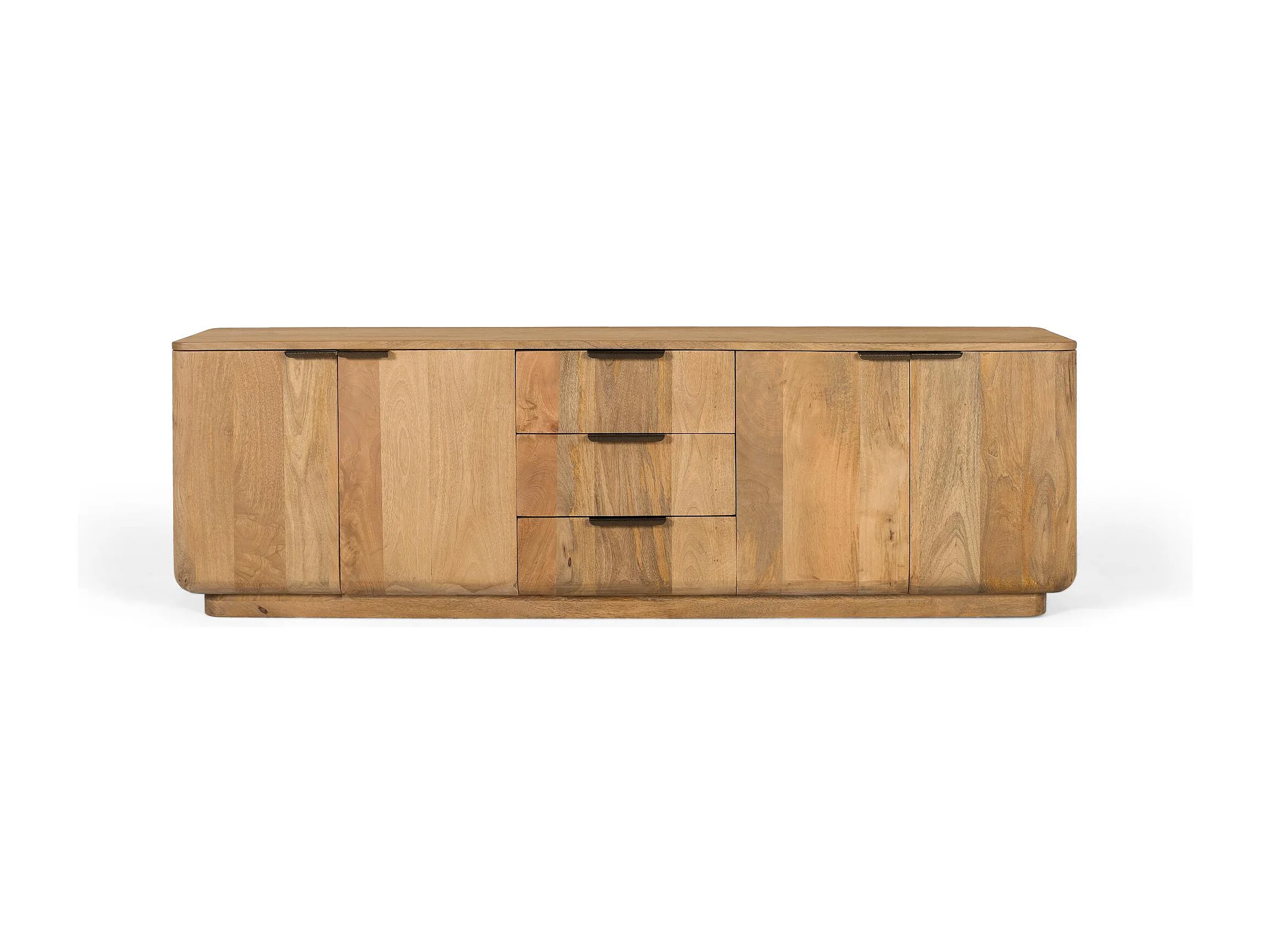 Meuble TV en bois de manguier de couleur naturelle avec coins arrondis