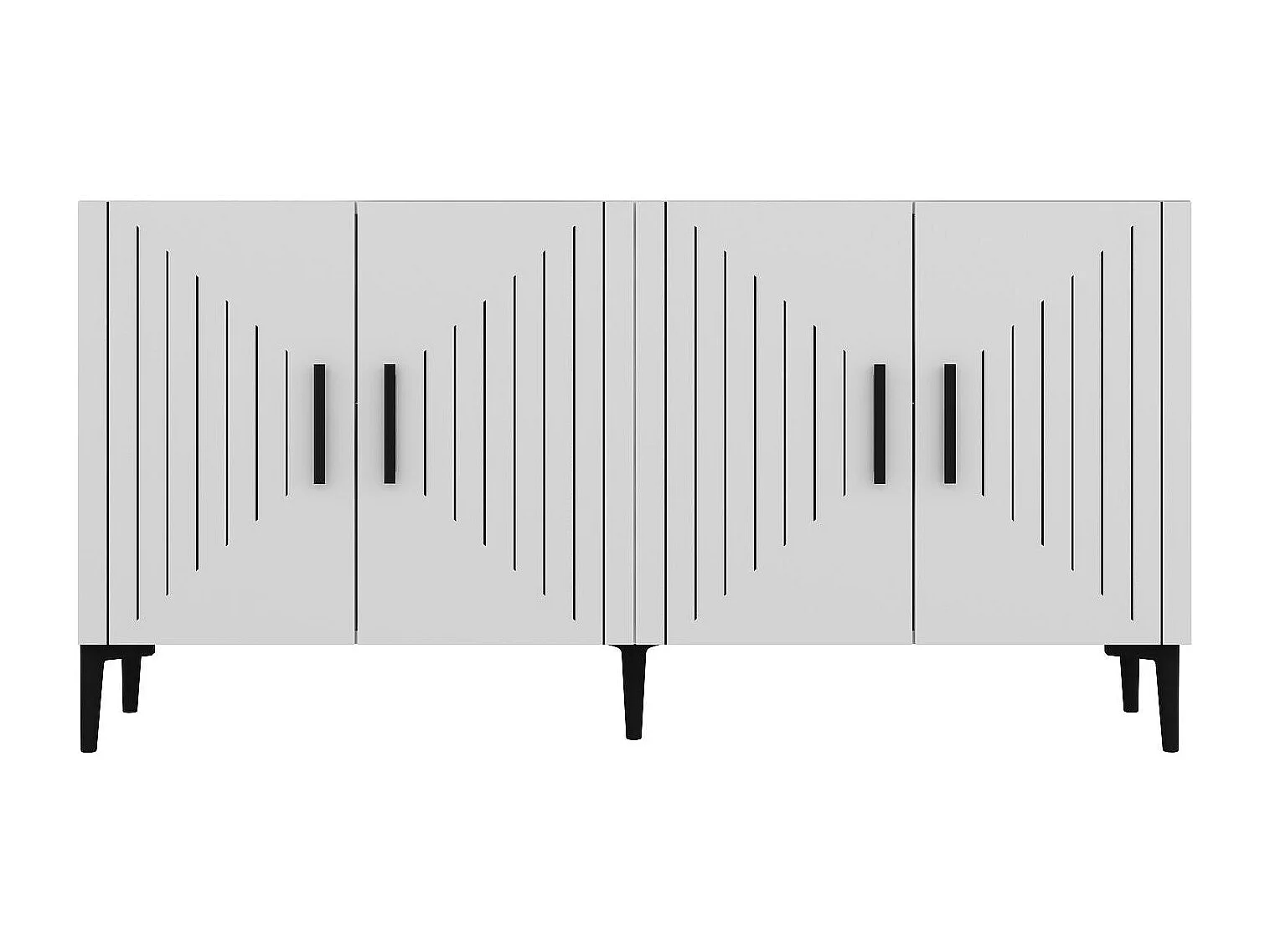 Buffet – 150 cm x 75 cm x 35 cm – Blanc et Argent – Mélamine