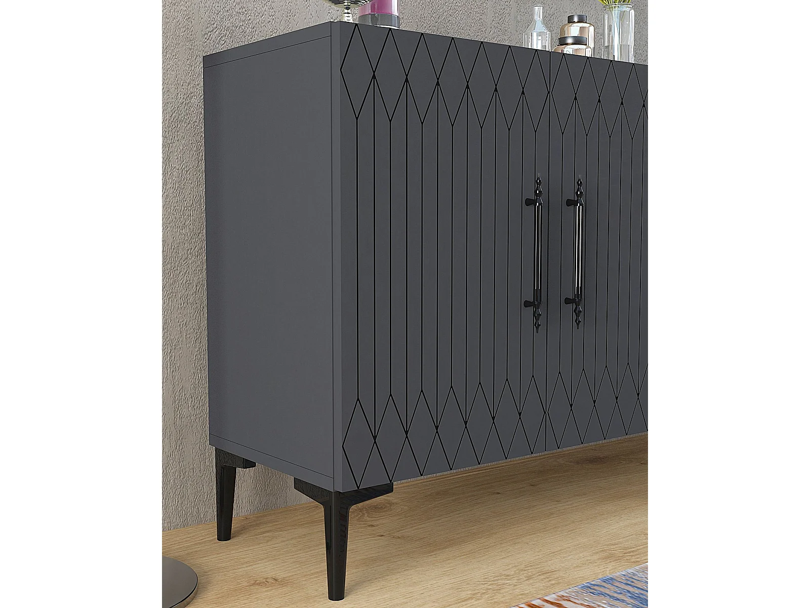 Buffet design 4 portes battantes Fedra L150cm Anthracite et Argent