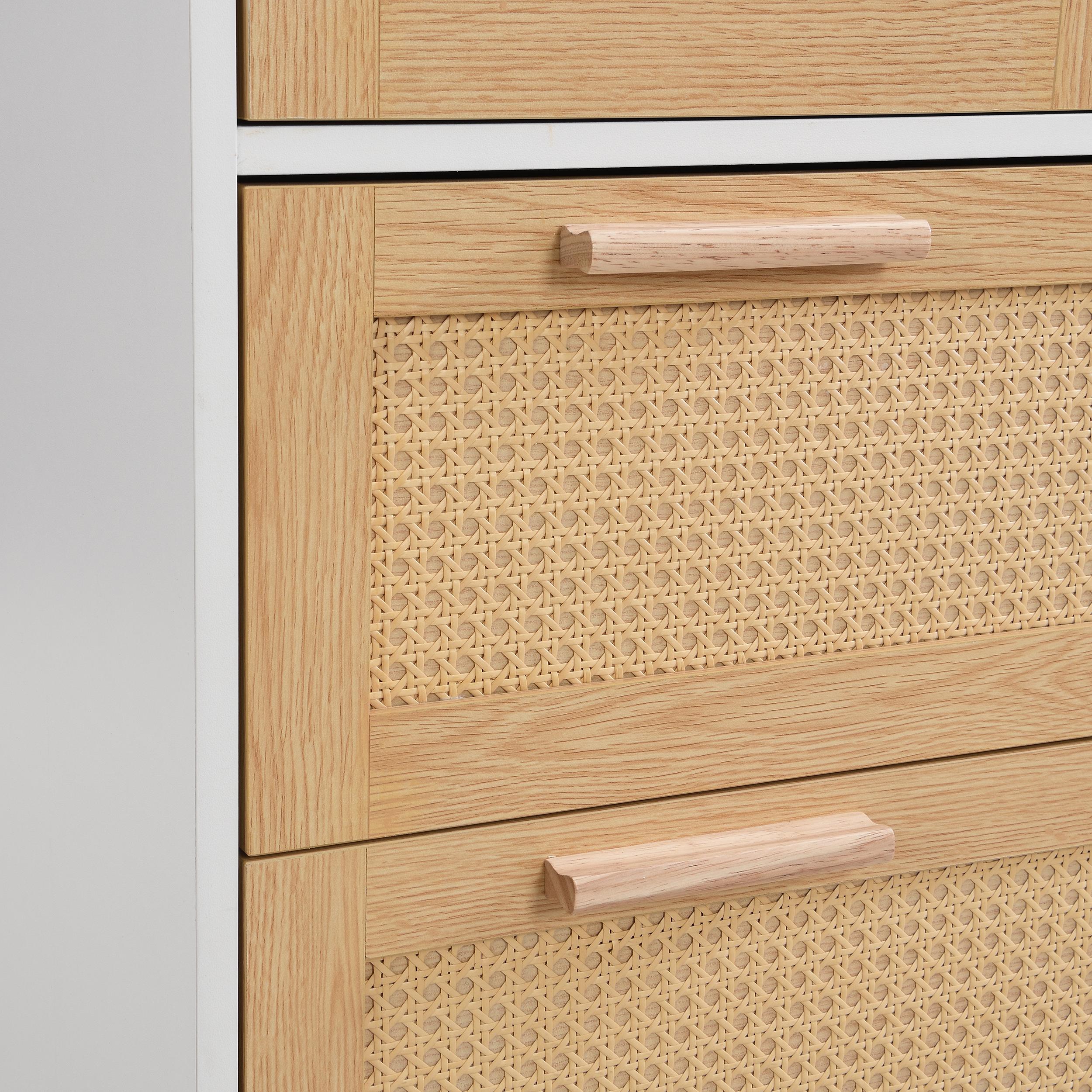 Buffet en rotin naturel avec 4 tiroirs Naturel et blanc 80x38x80cm