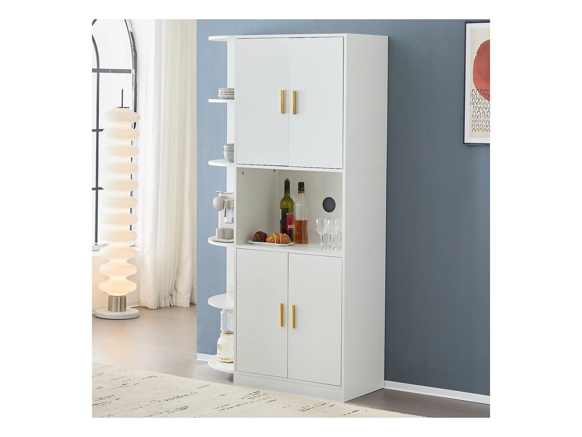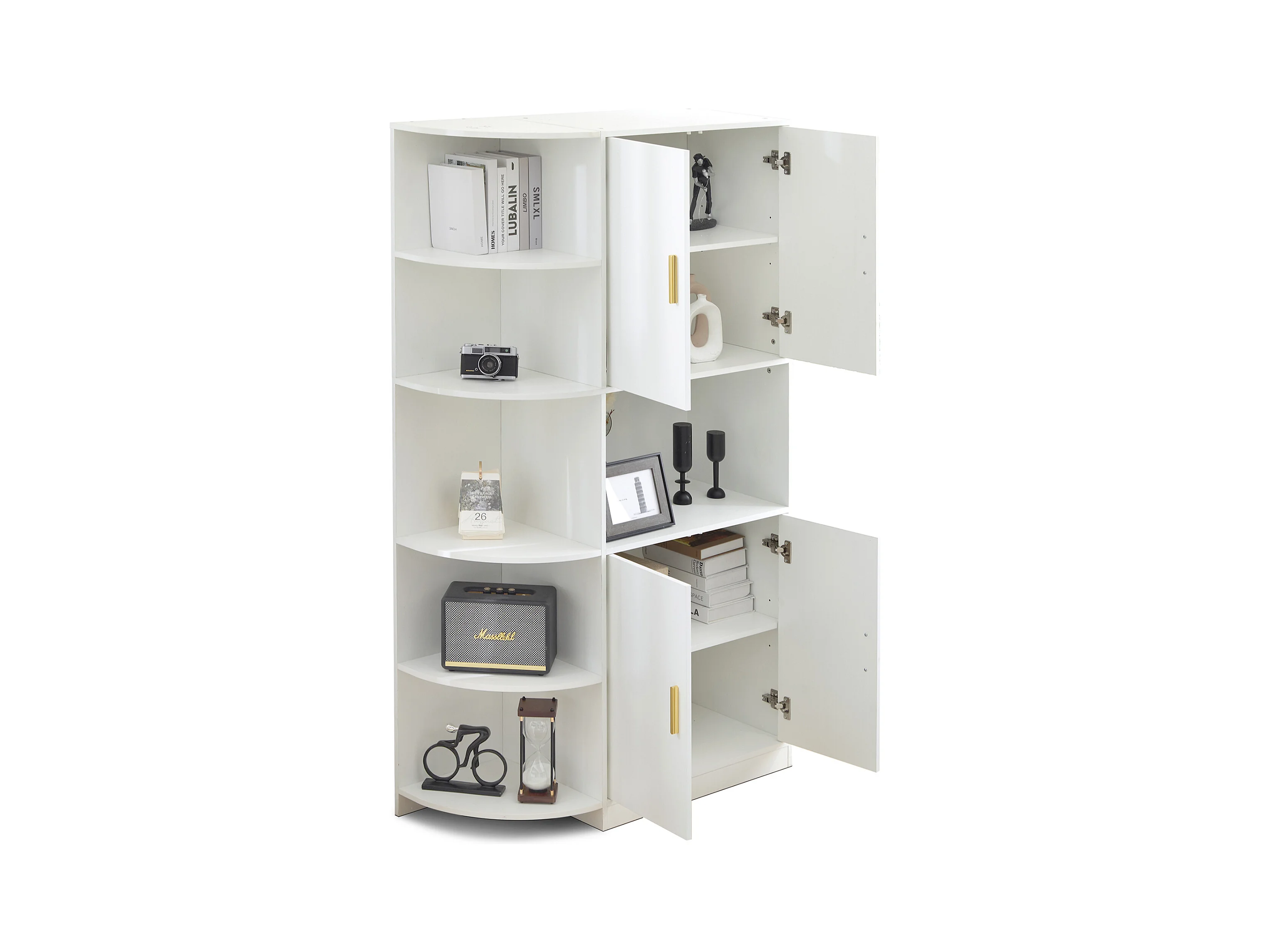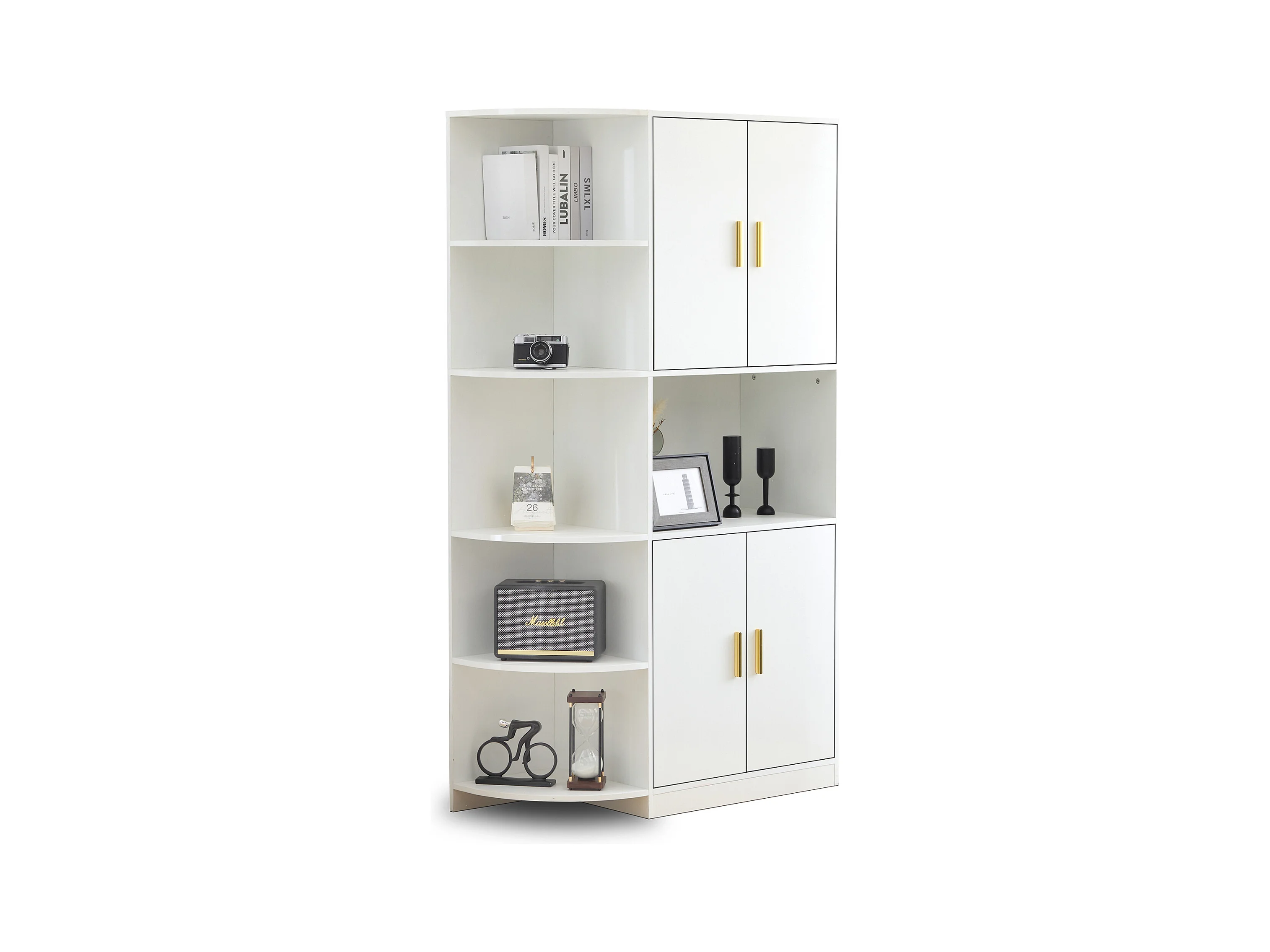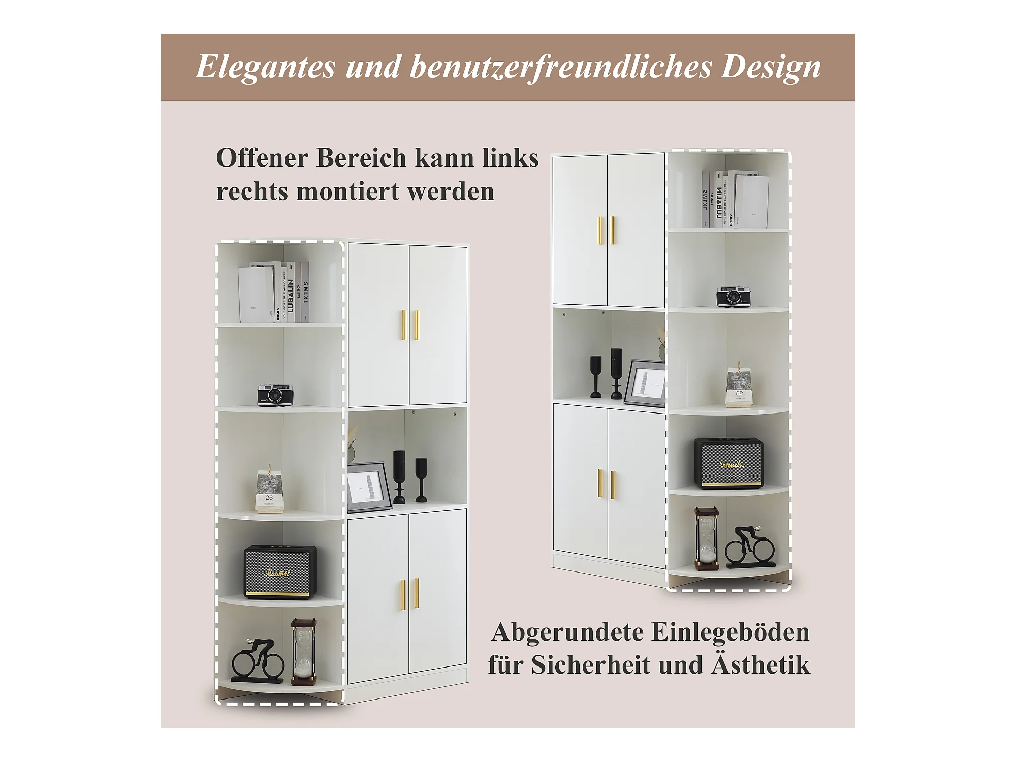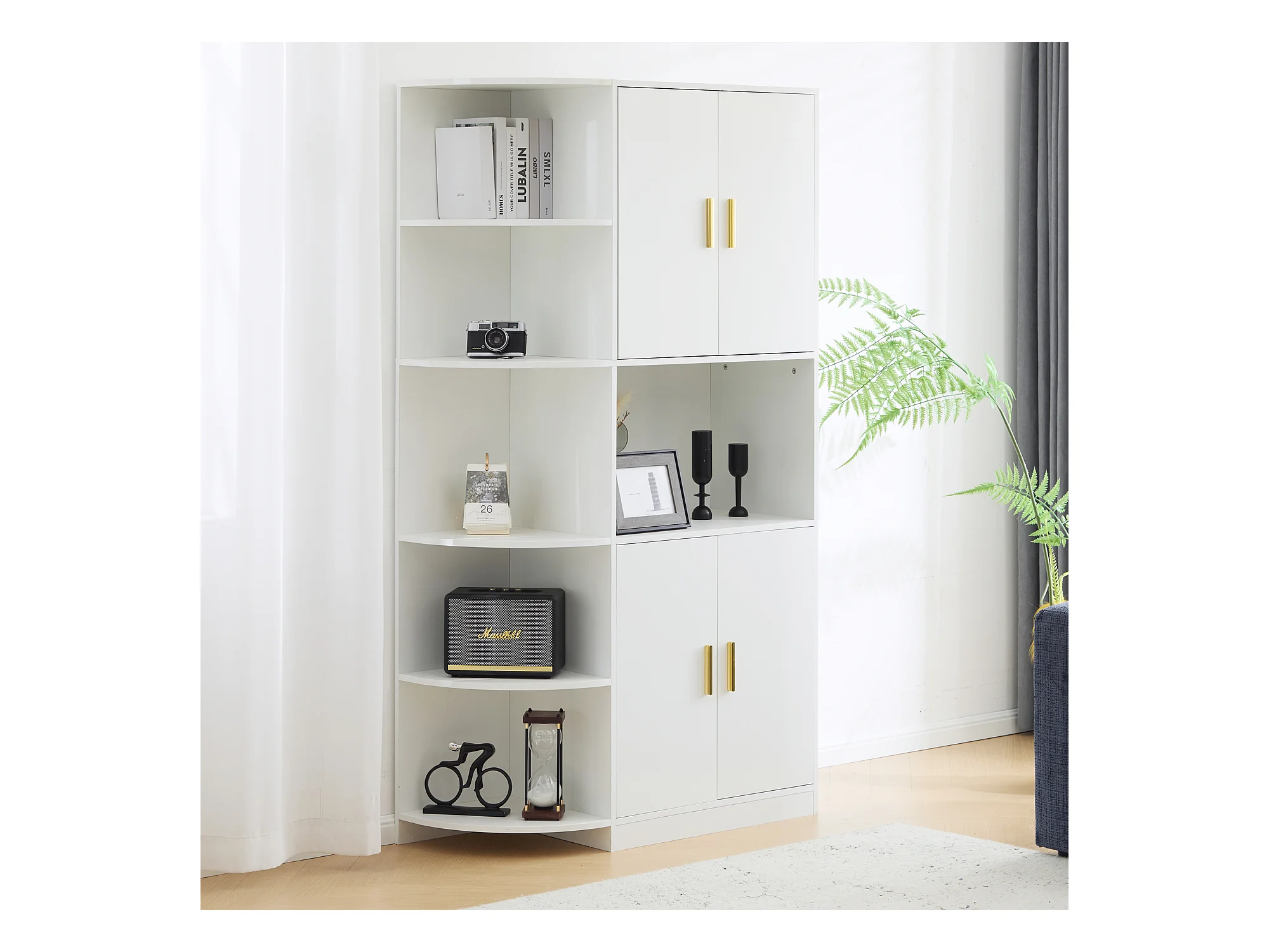 Buffet haut avec 4 portes et 5 étagères d'angle ouvertes - 100 x 40 x 180 cm - Bois MDF - Blanc