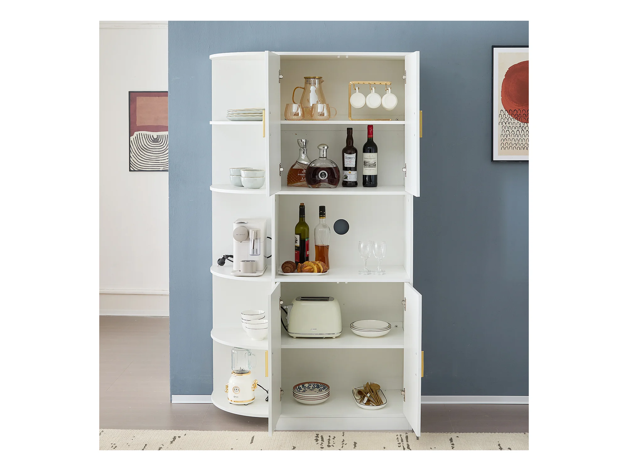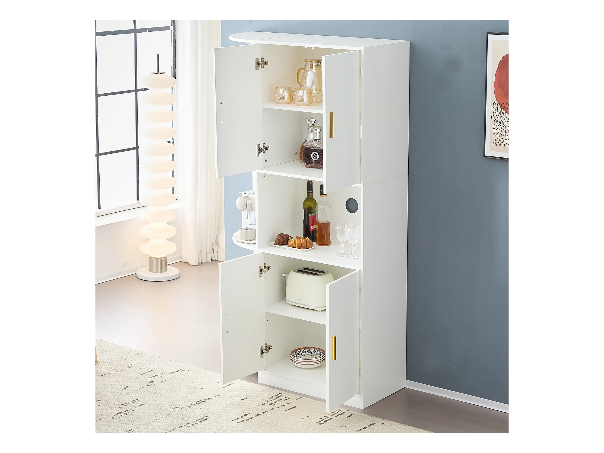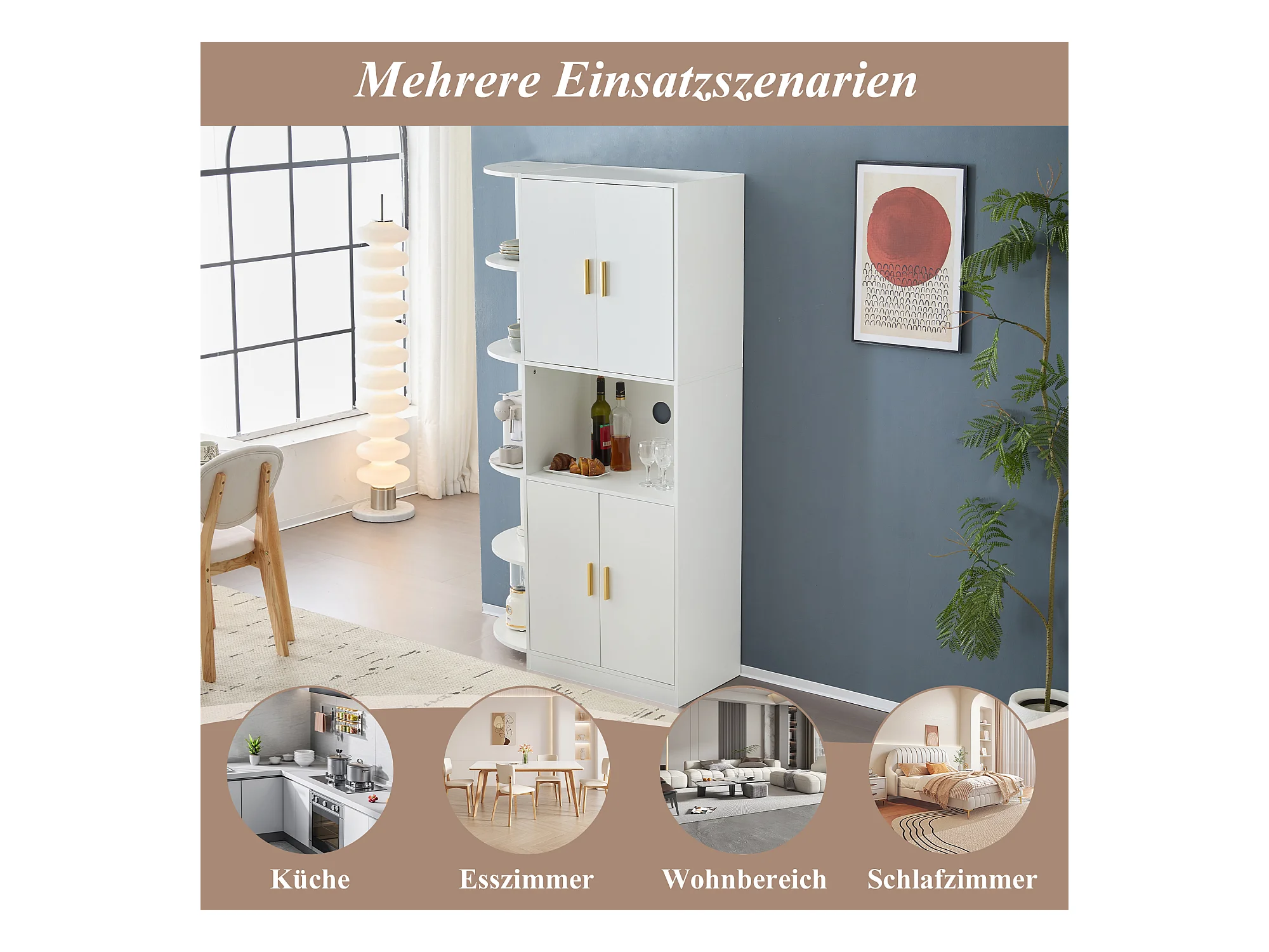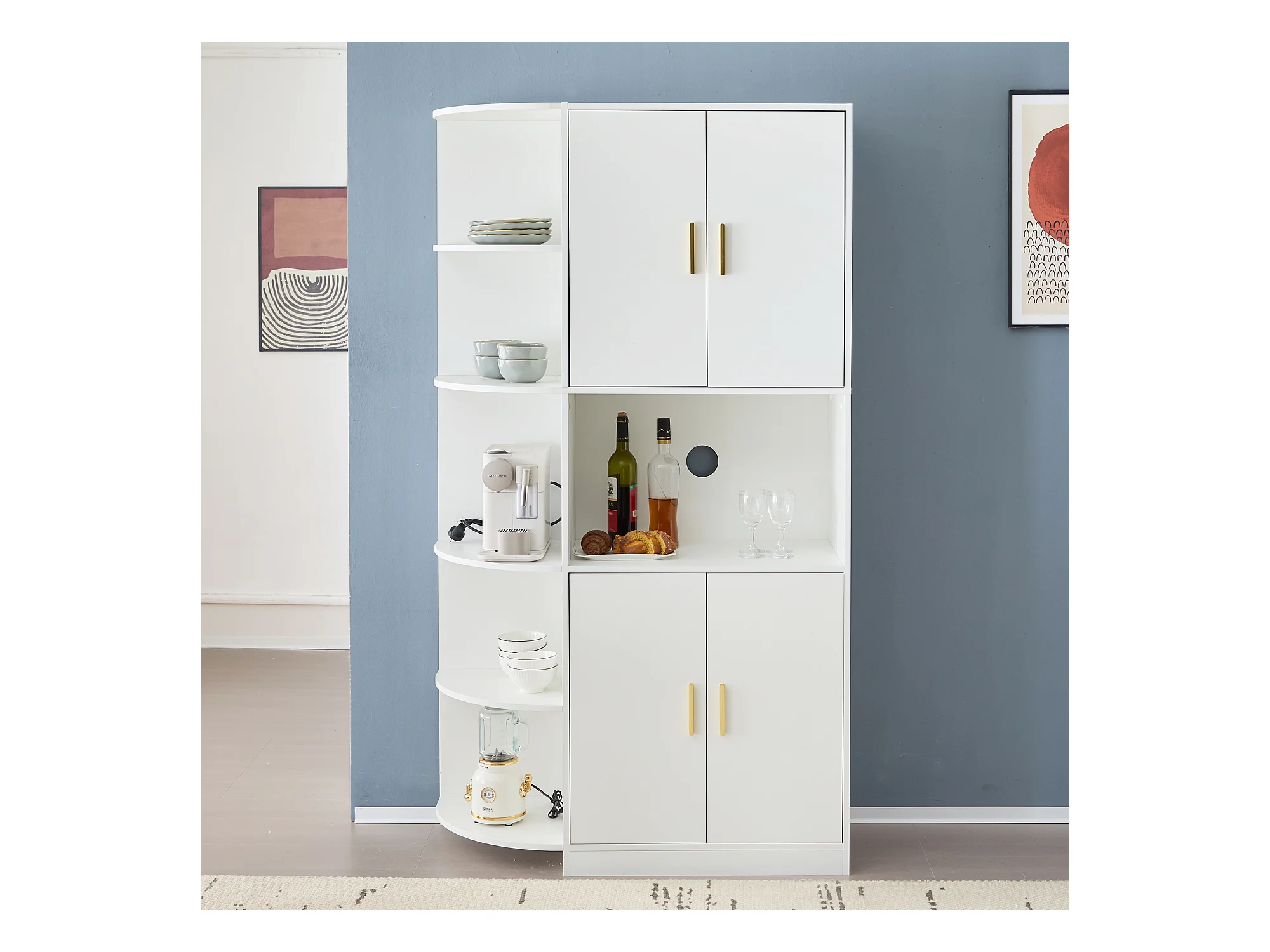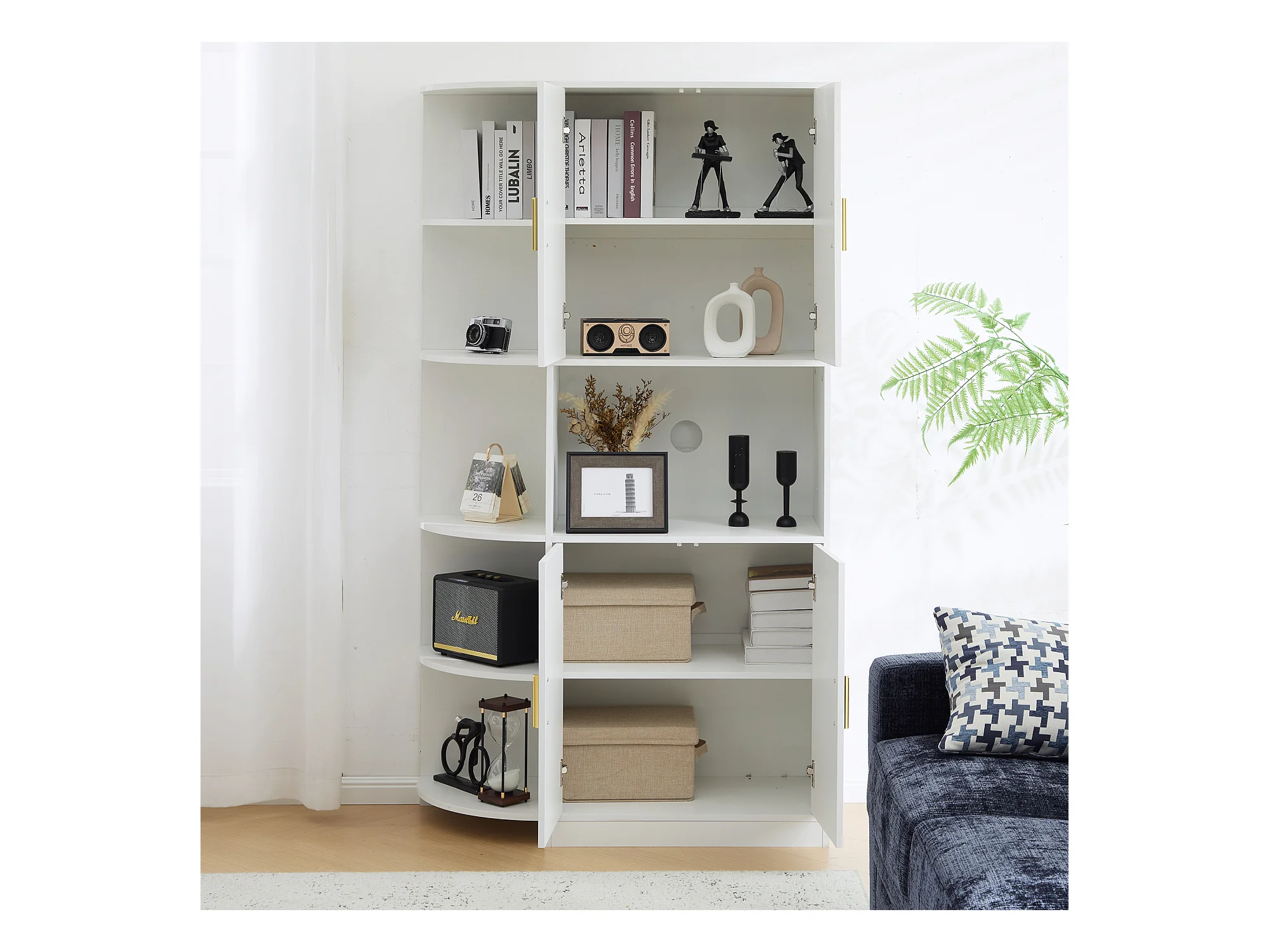 Buffet haut avec 4 portes et 5 étagères d'angle ouvertes - 100 x 40 x 180 cm - Bois MDF - Blanc