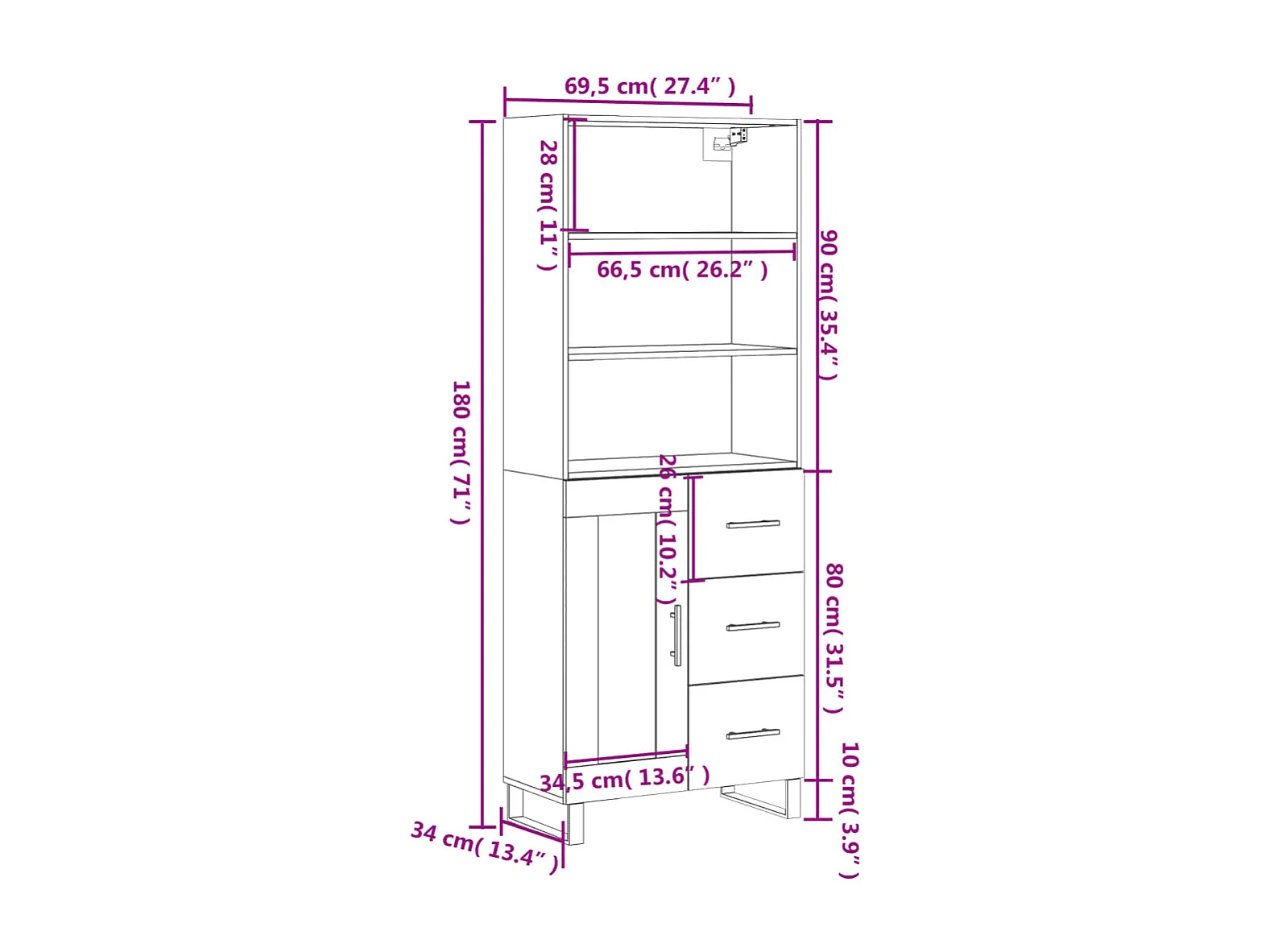 Buffet haut Chêne sonoma 69,5x34x180 cm Bois d'ingénierie