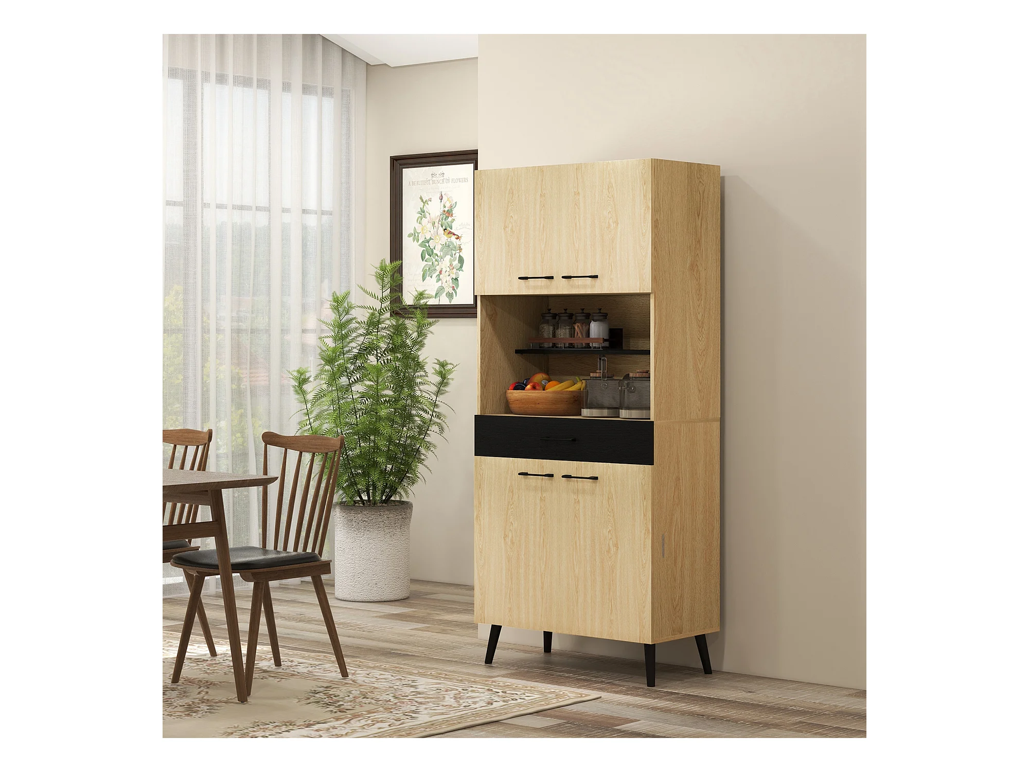 Buffet haut armoire de cuisine multi-rangement 2 placards 2 portes tiroir niche MDF panneaux aspect chêne clair