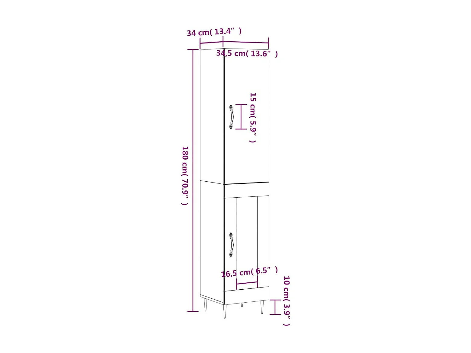 Buffet haut Gris béton 34,5x34x180 cm Bois d'ingénierie