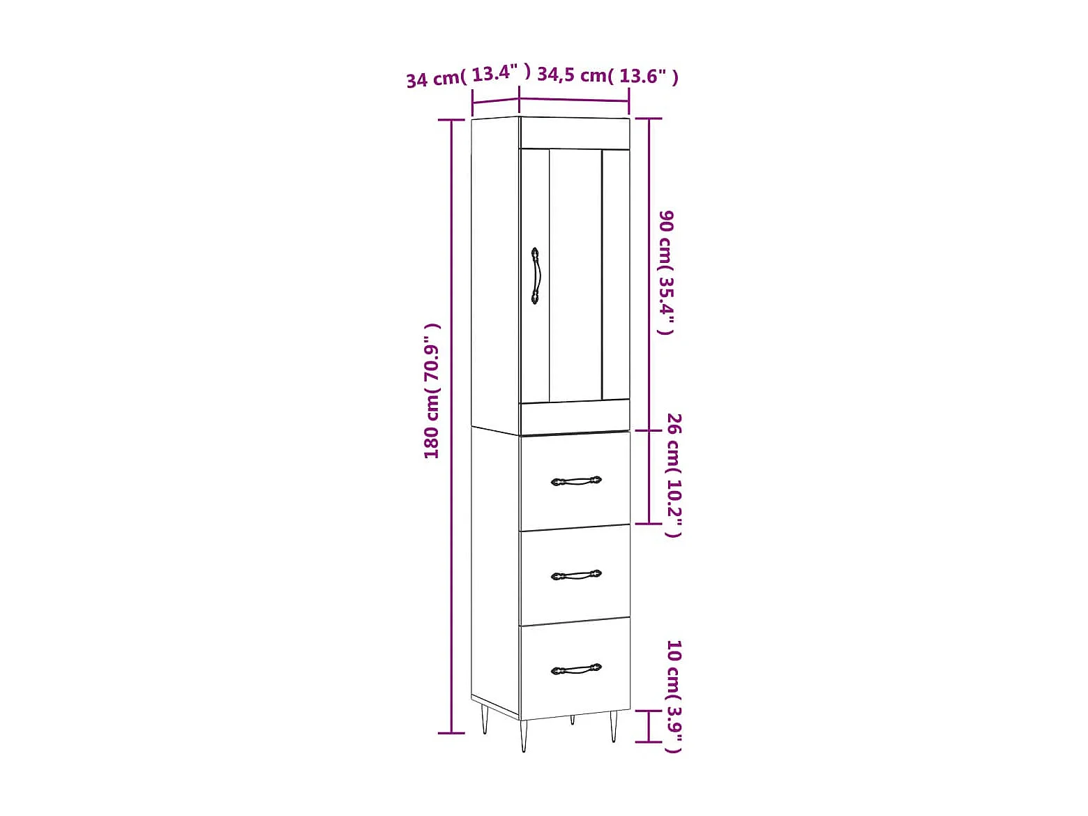 Buffet haut Gris béton 34,5x34x180 cm Bois d'ingénierie