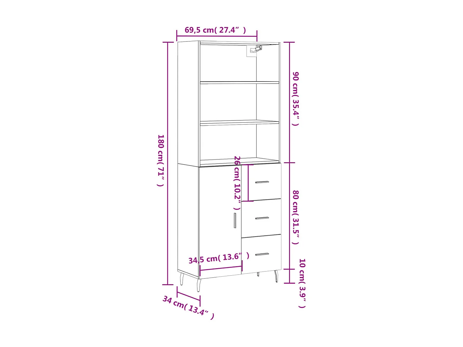 Buffet haut Gris béton 69,5x34x180 cm Bois d'ingénierie