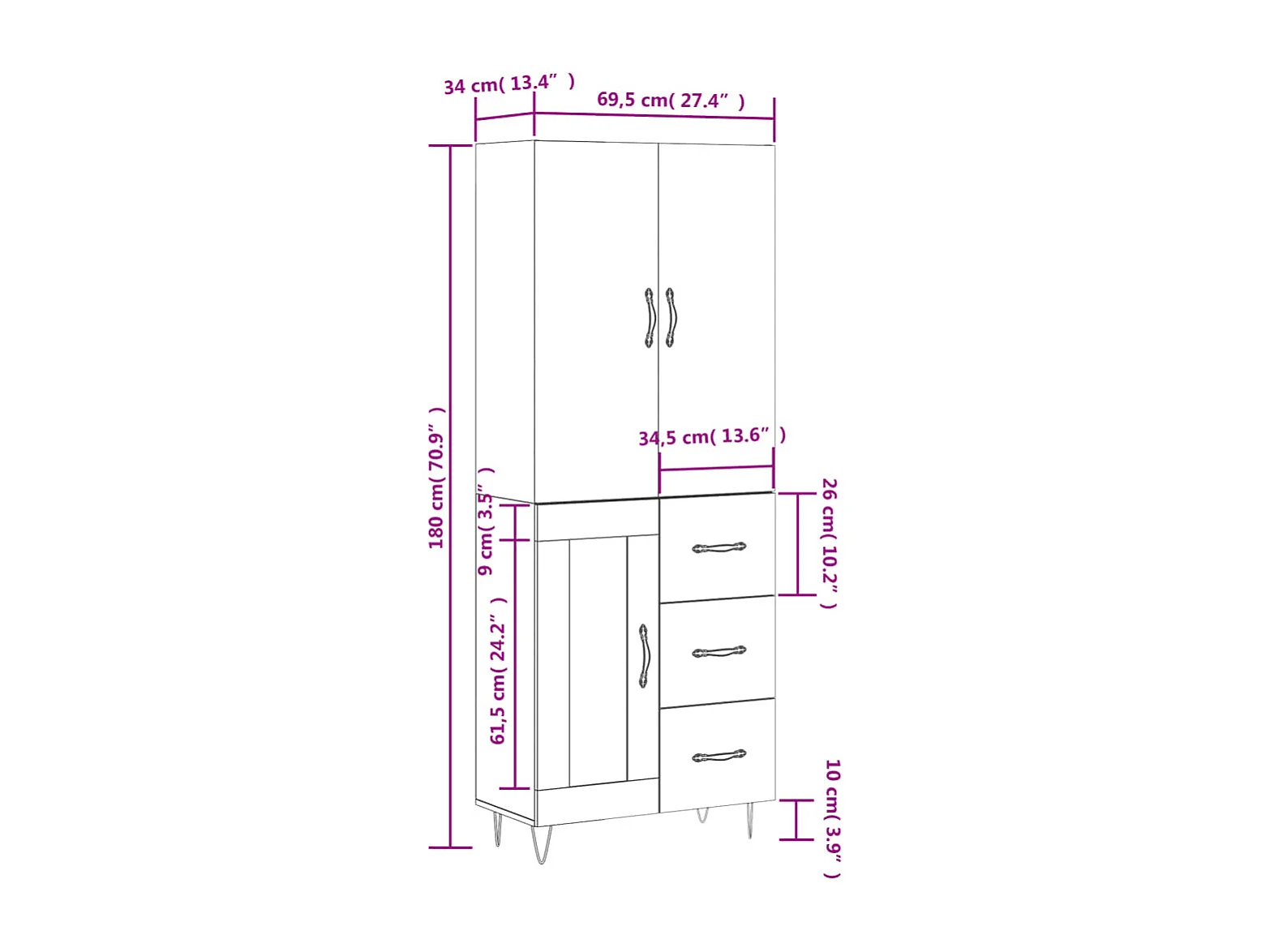 Buffet haut Sonoma gris 69,5x34x180 cm Bois d'ingénierie