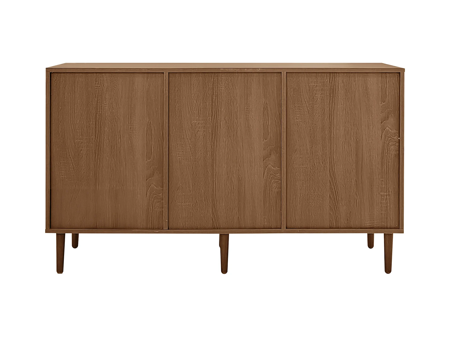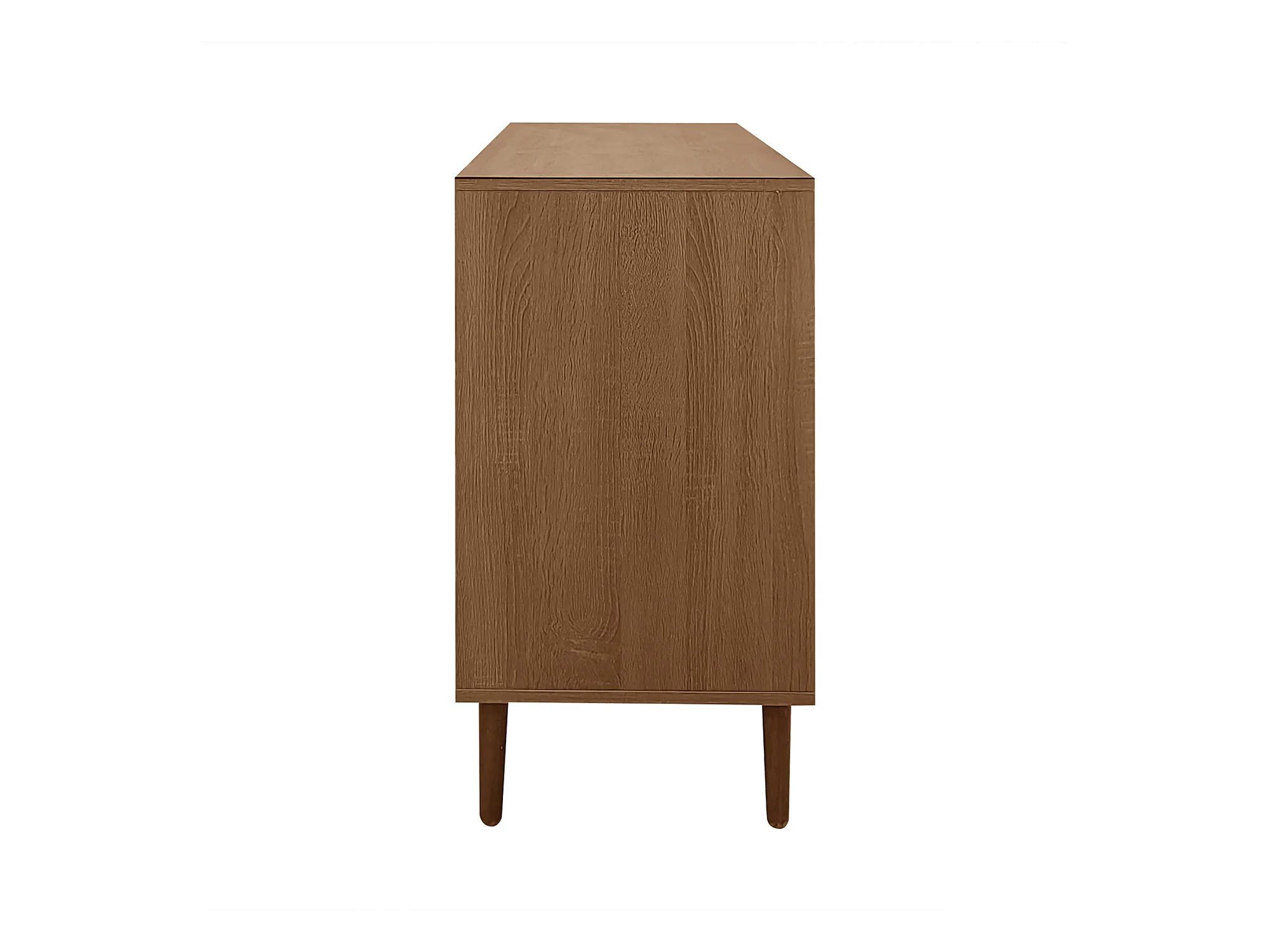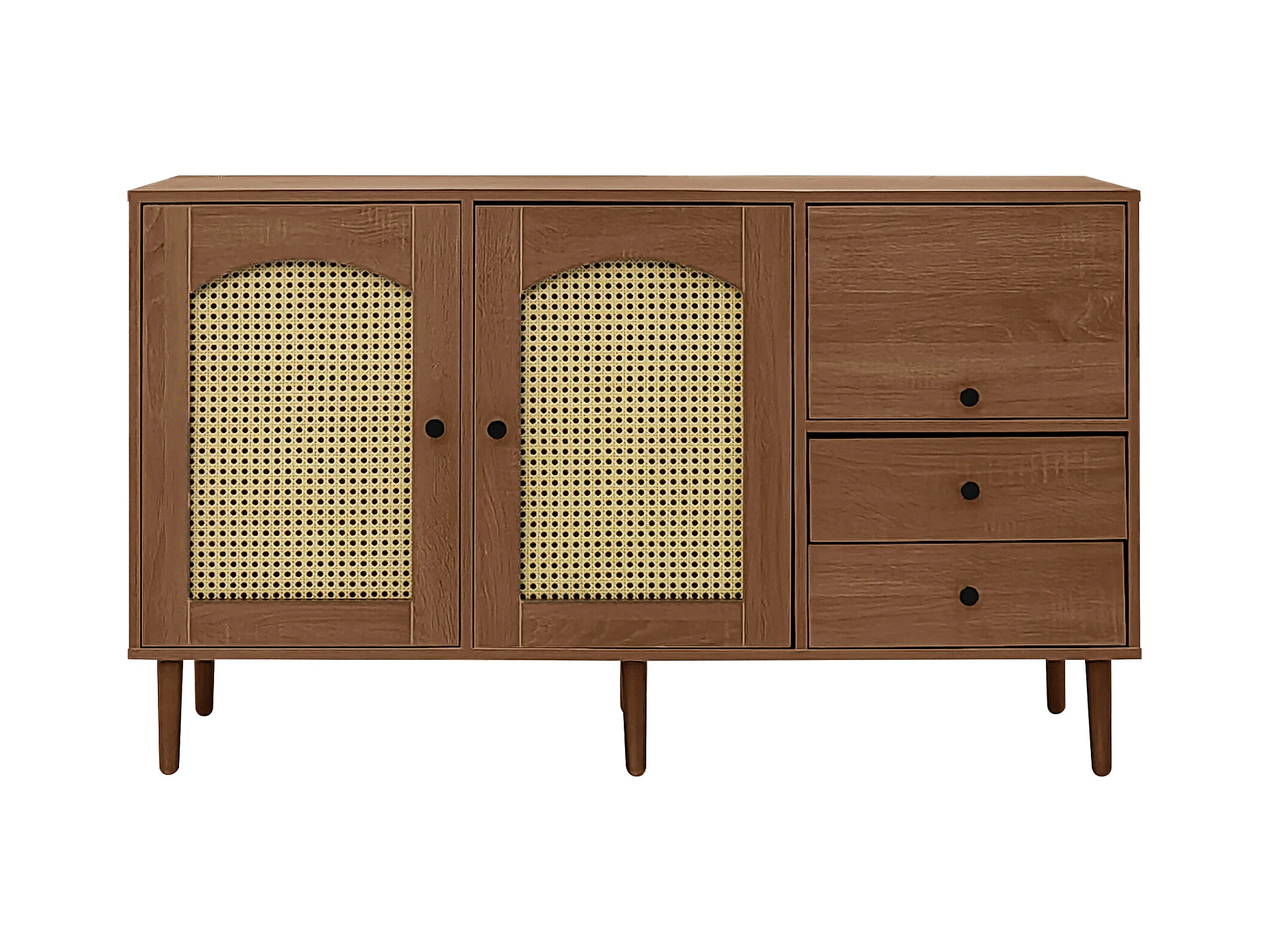 Buffet marron avec 2 portes en rotin, 1 porte et 2 tiroirs 130x40x75,5