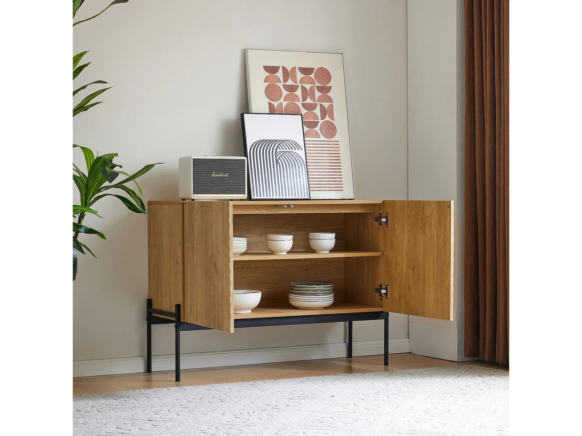 Buffet Moderne avec 2 portes et 2 niches, en Bois, charge max 50kg, Naturel clair, 100x38x77cm