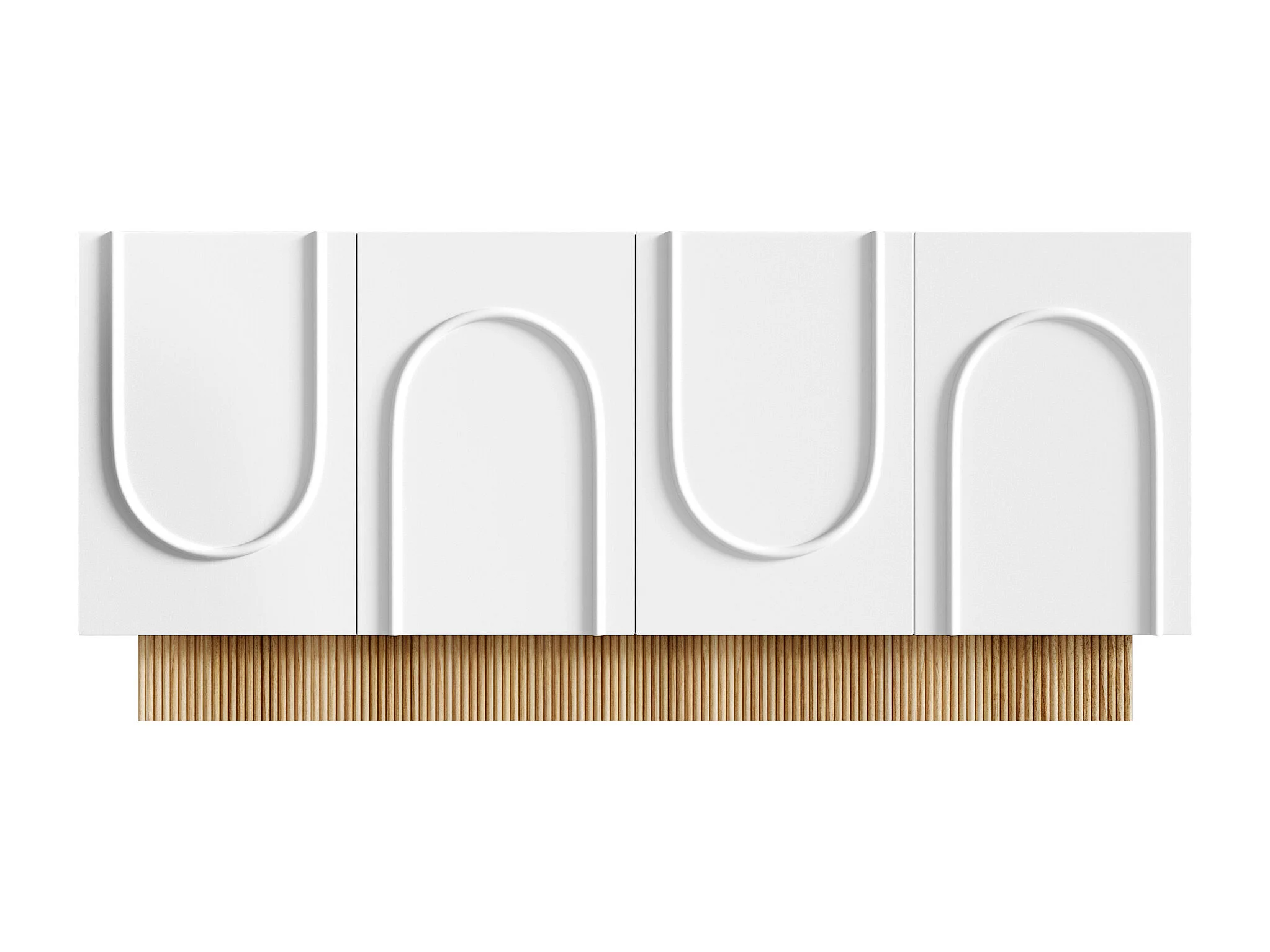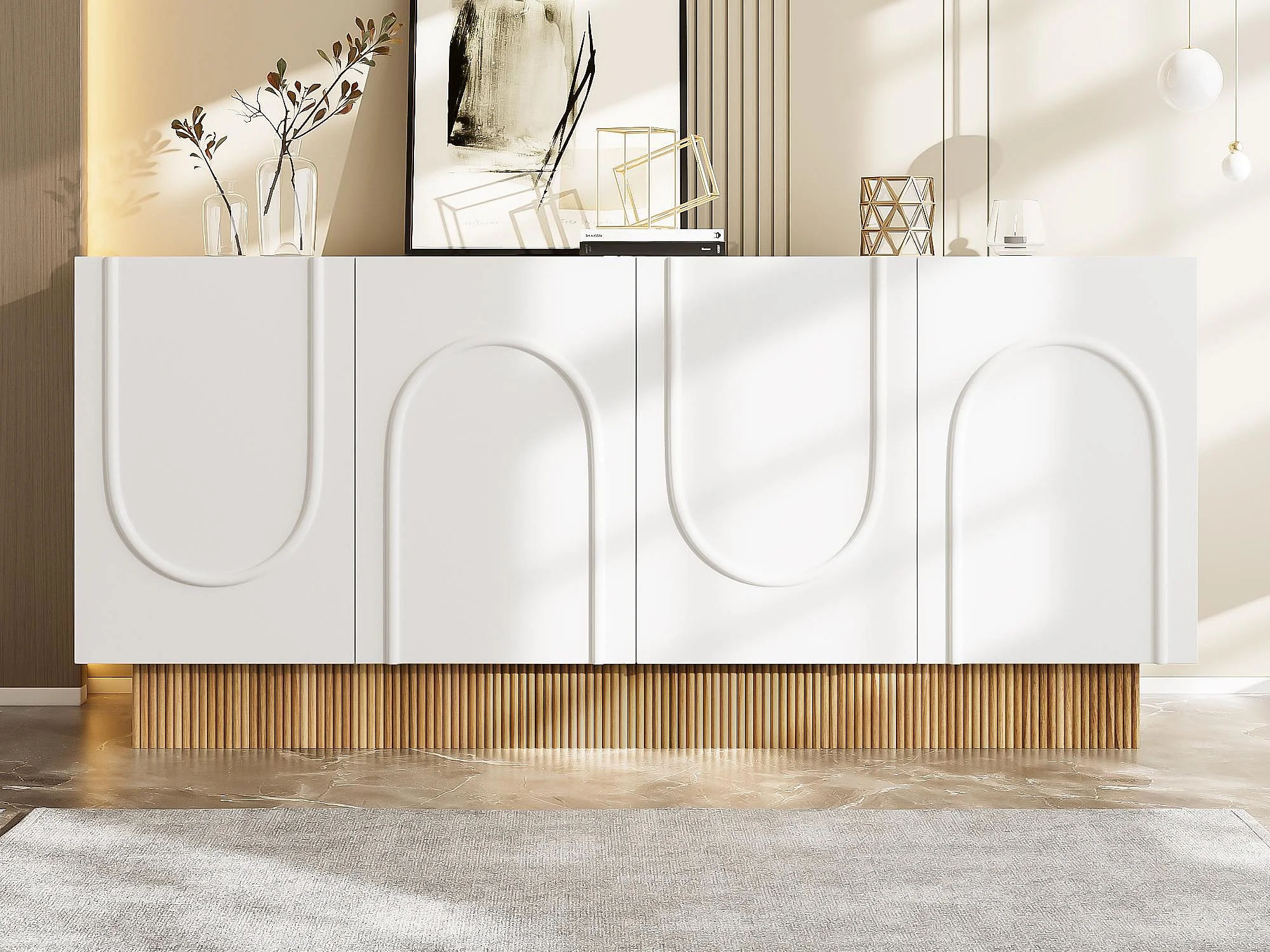 Buffet moderne design géométrique - 160 x 38.5 x 70 cm - avec courbes irrégulières + 4 portes - MDF + aggloméré - blanc