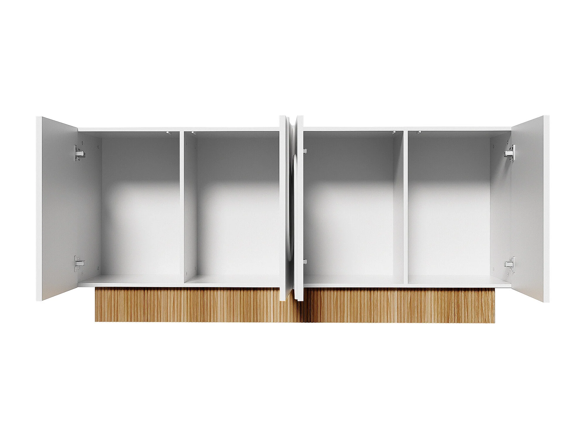 Buffet moderne 160x38x75 cm - 4 portes - Design en relief - Panneaux de particules - Blanc + naturel