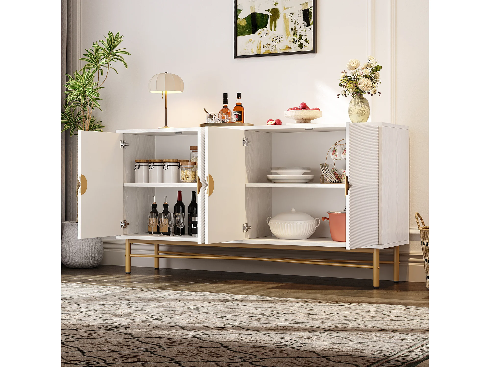 Buffet moderne 160x40x82cm - avec 4 portes - pieds en métal - panneau de particules - Blanc