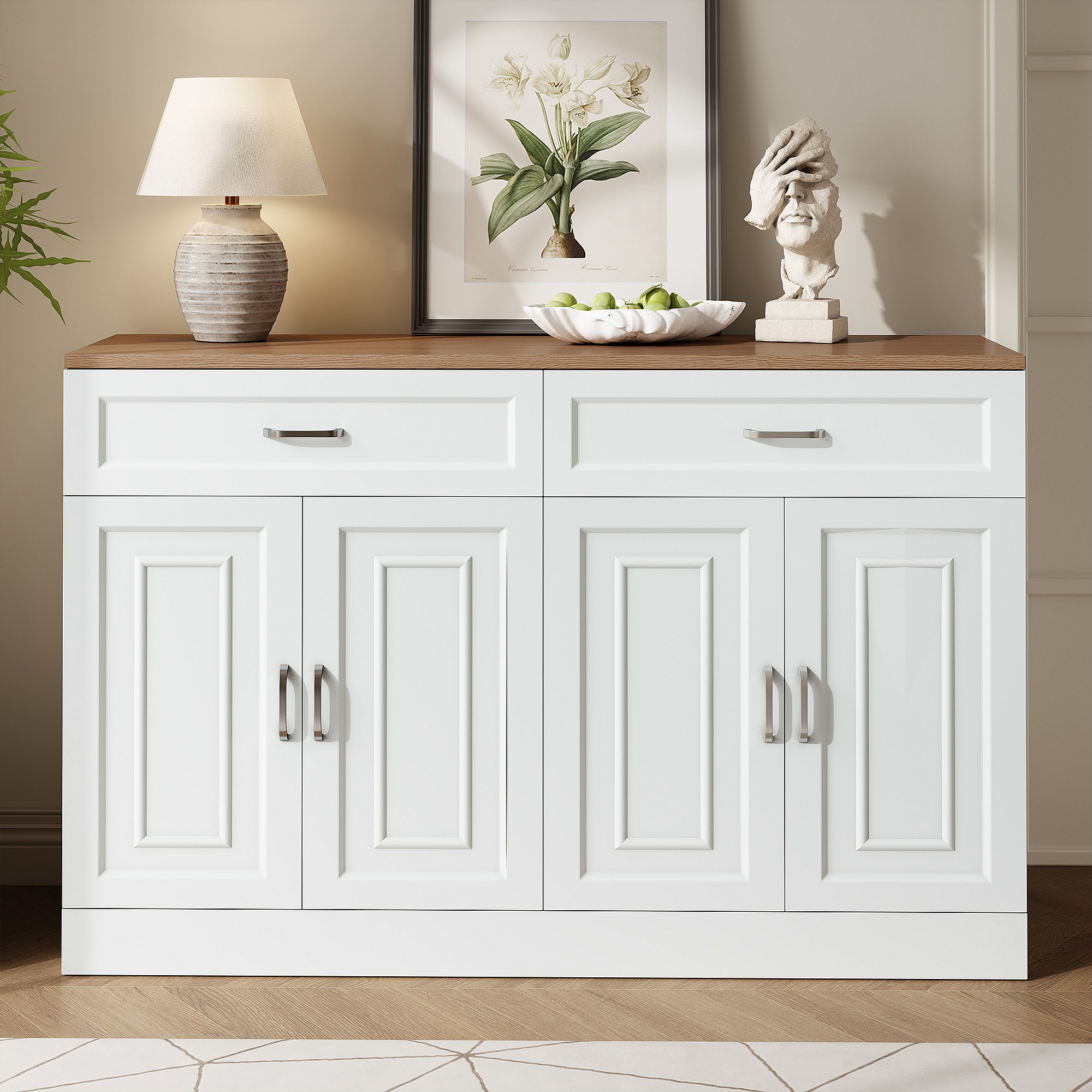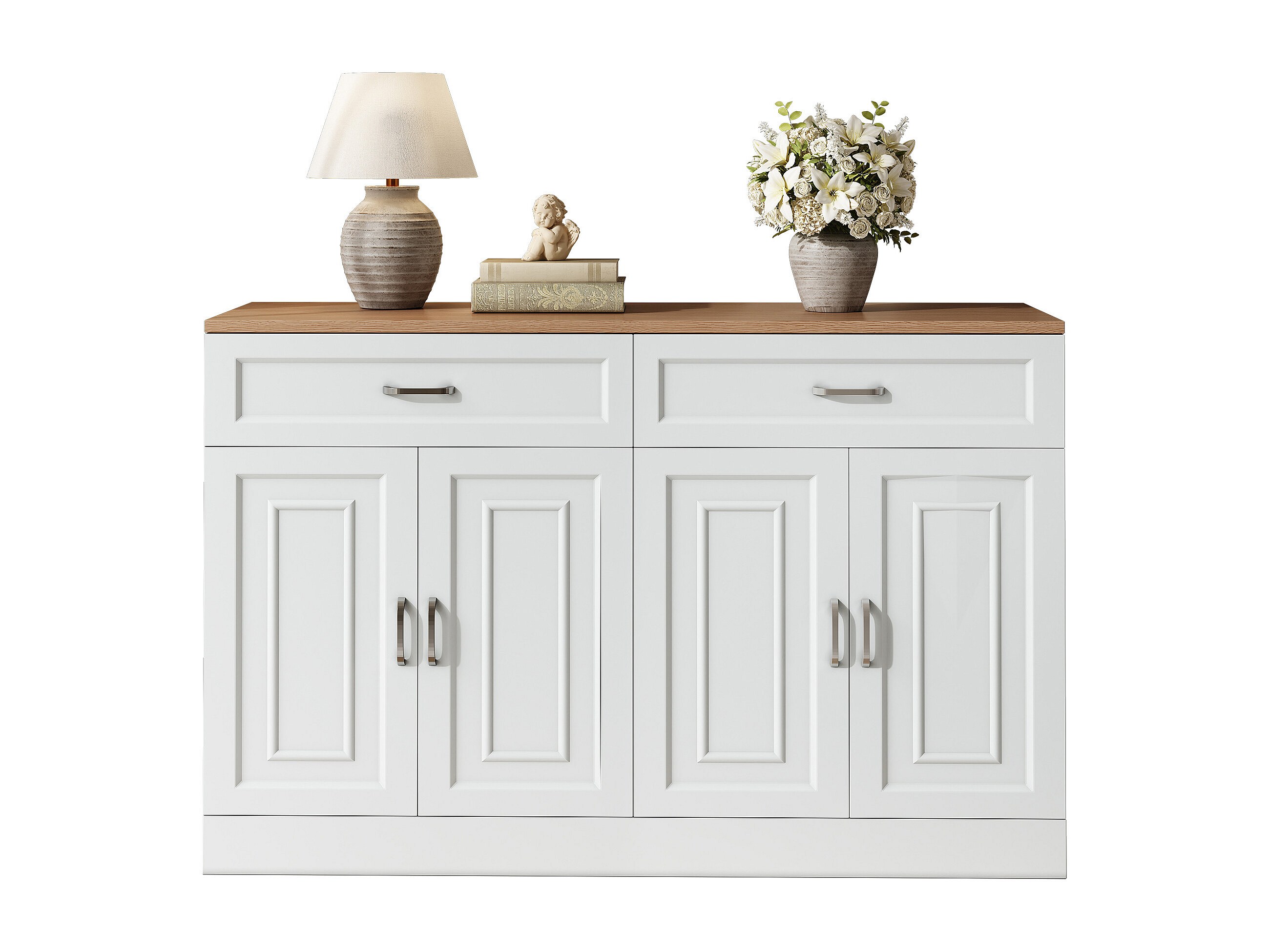 Buffet moderne avec étagères + 4 portes + 2 tiroirs - 120 x 35 x 80.5 cm - aggloméré - blanc