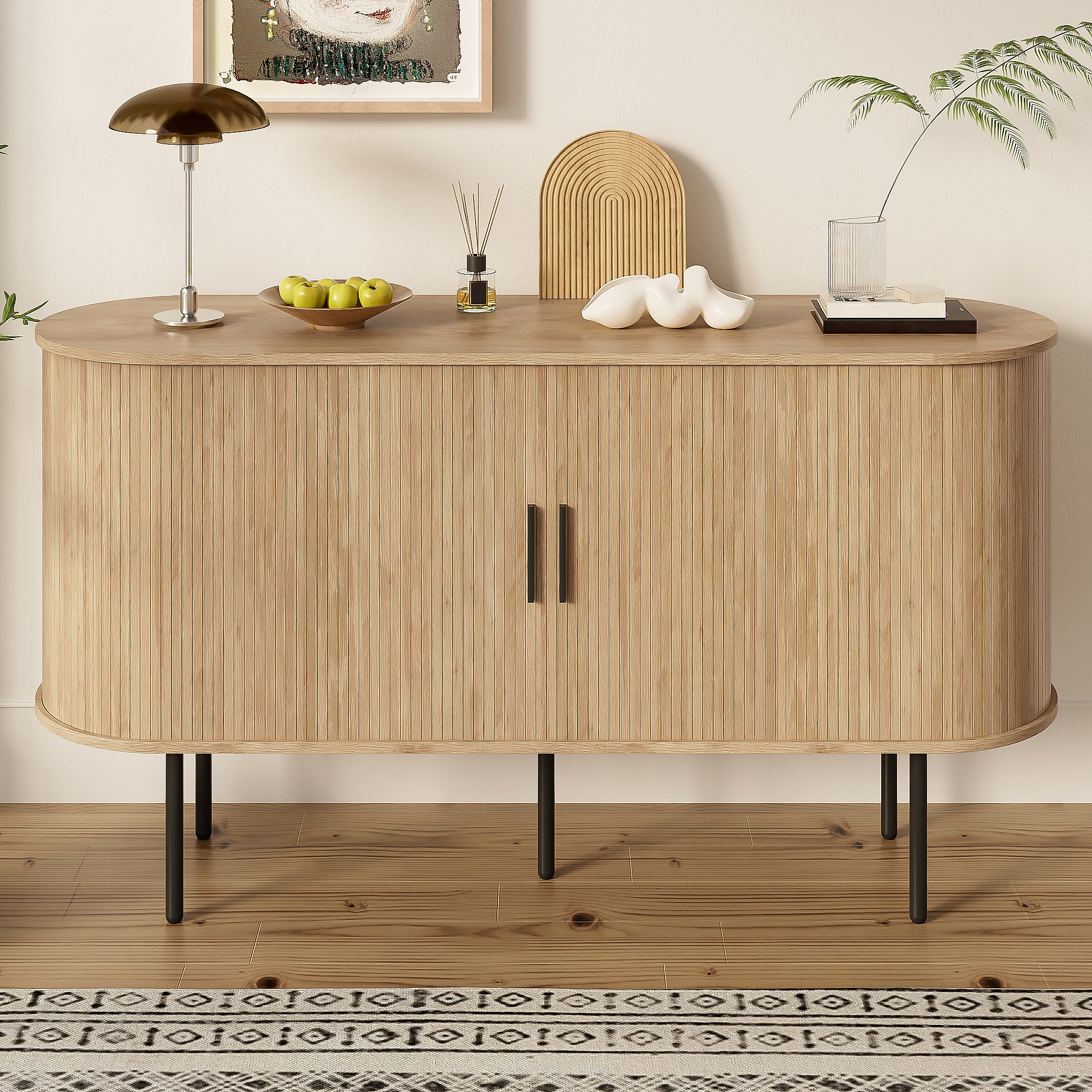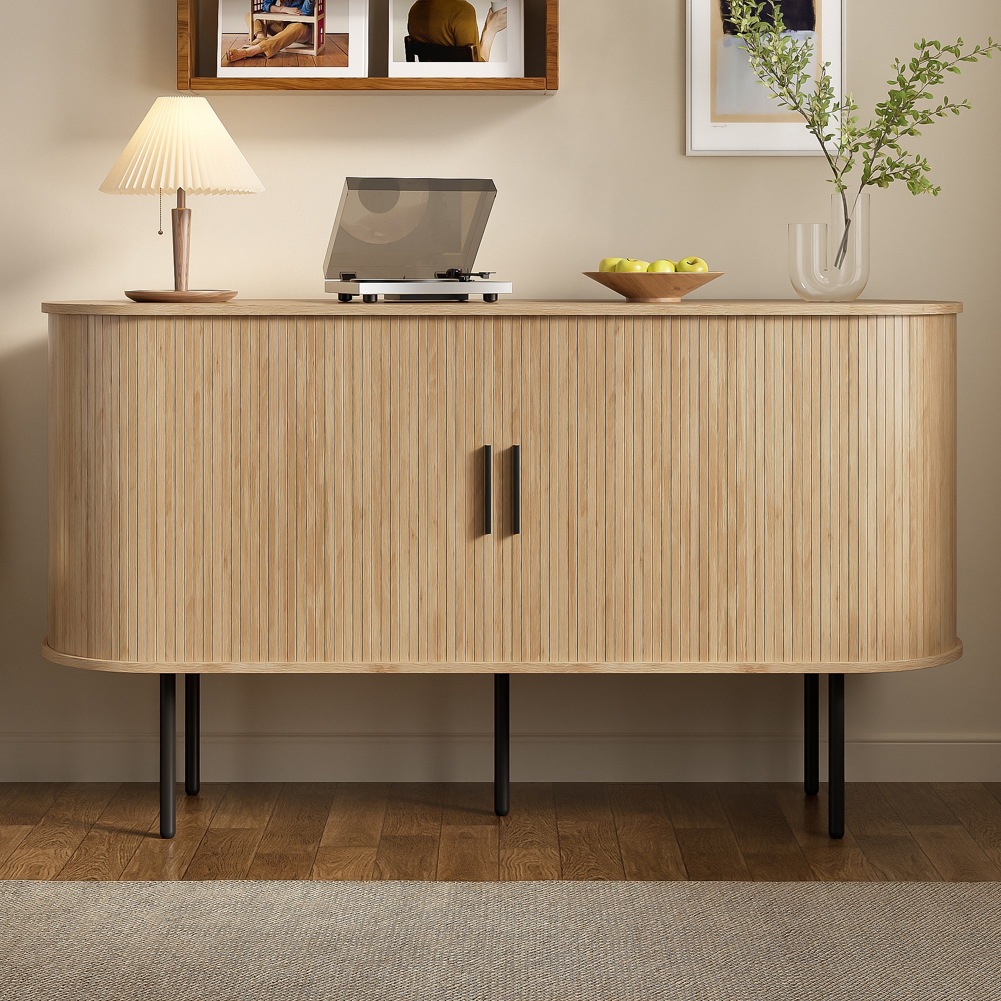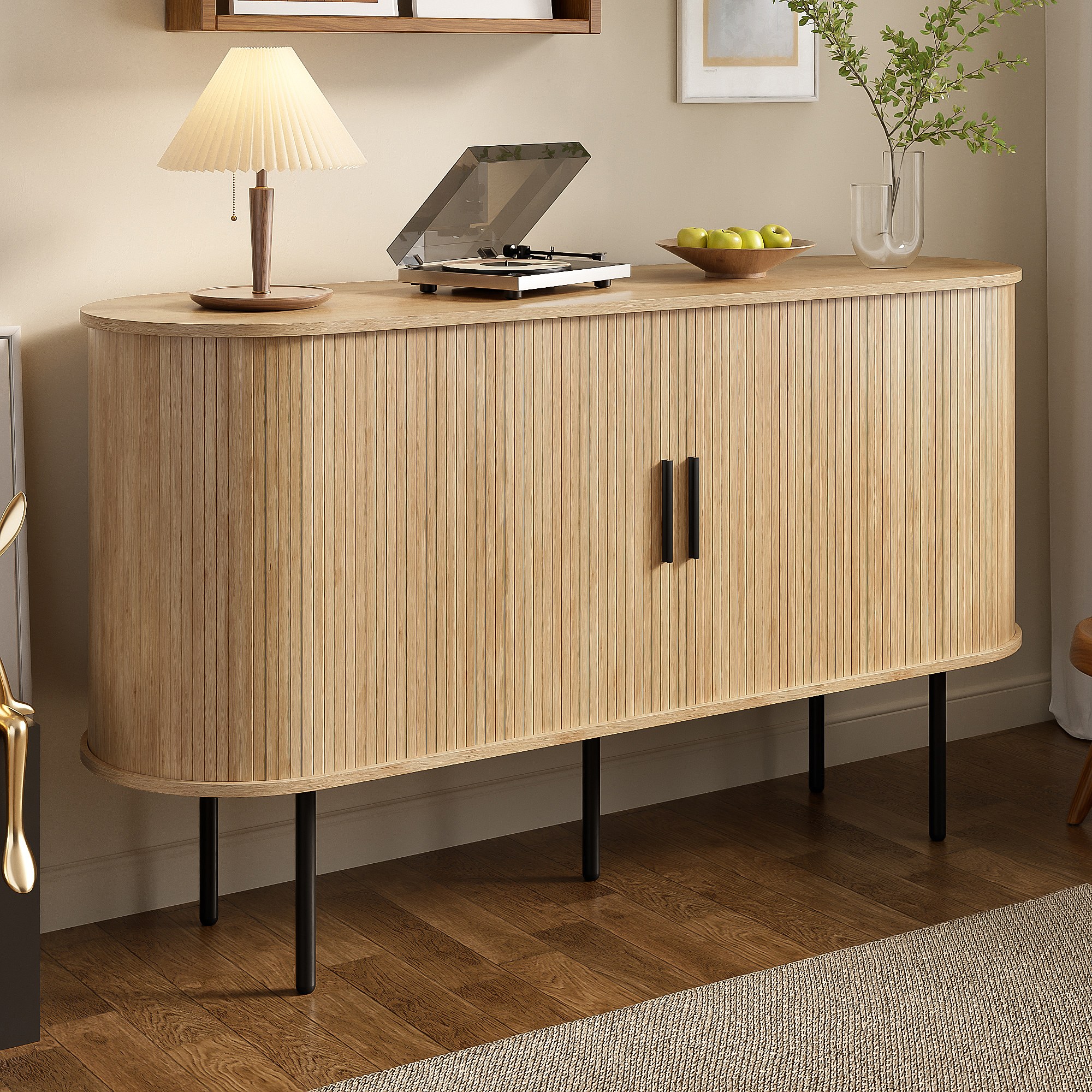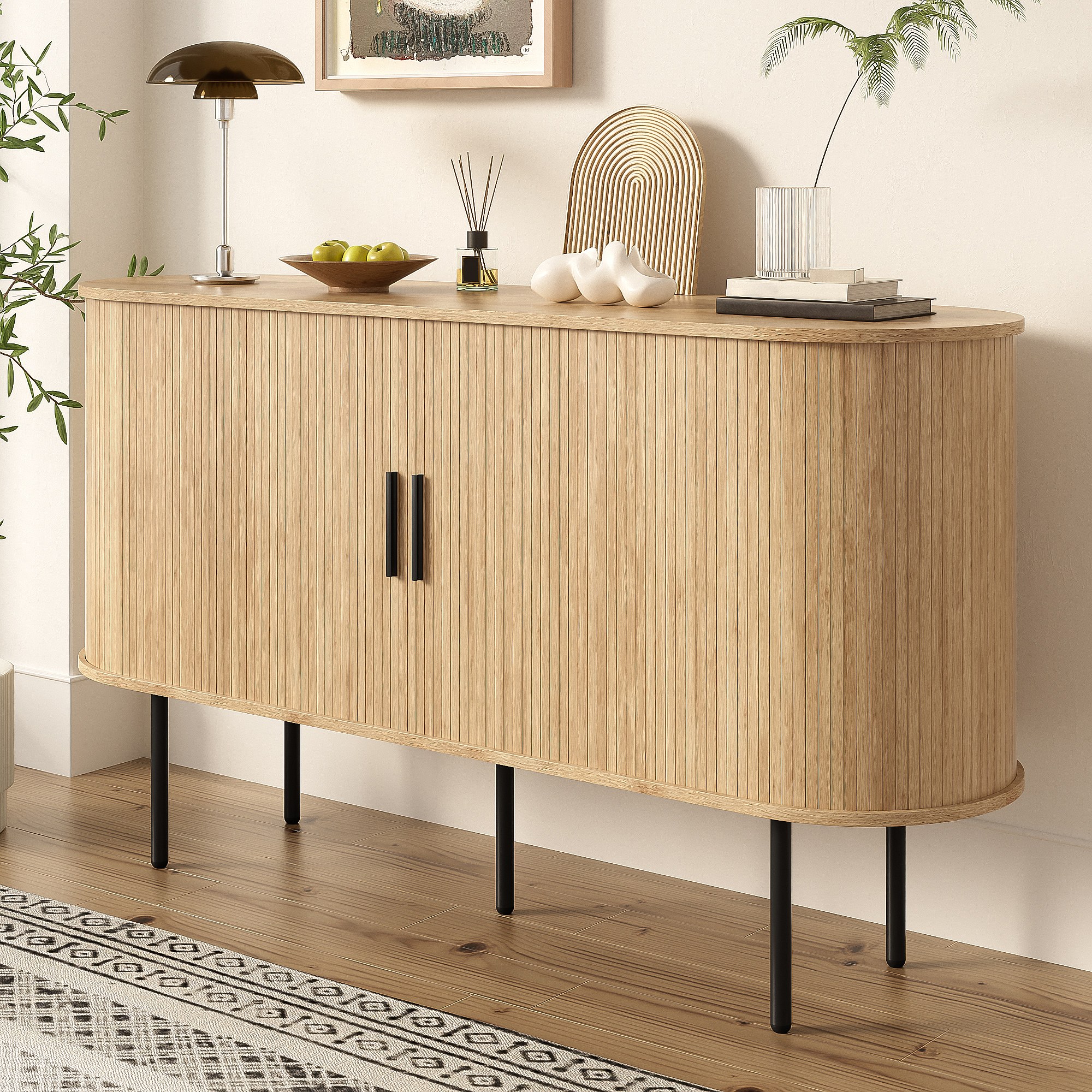 Buffet moderne avec portes à enroulement - pieds en fer - 140 x 40 x 78 cm - MDF - naturel