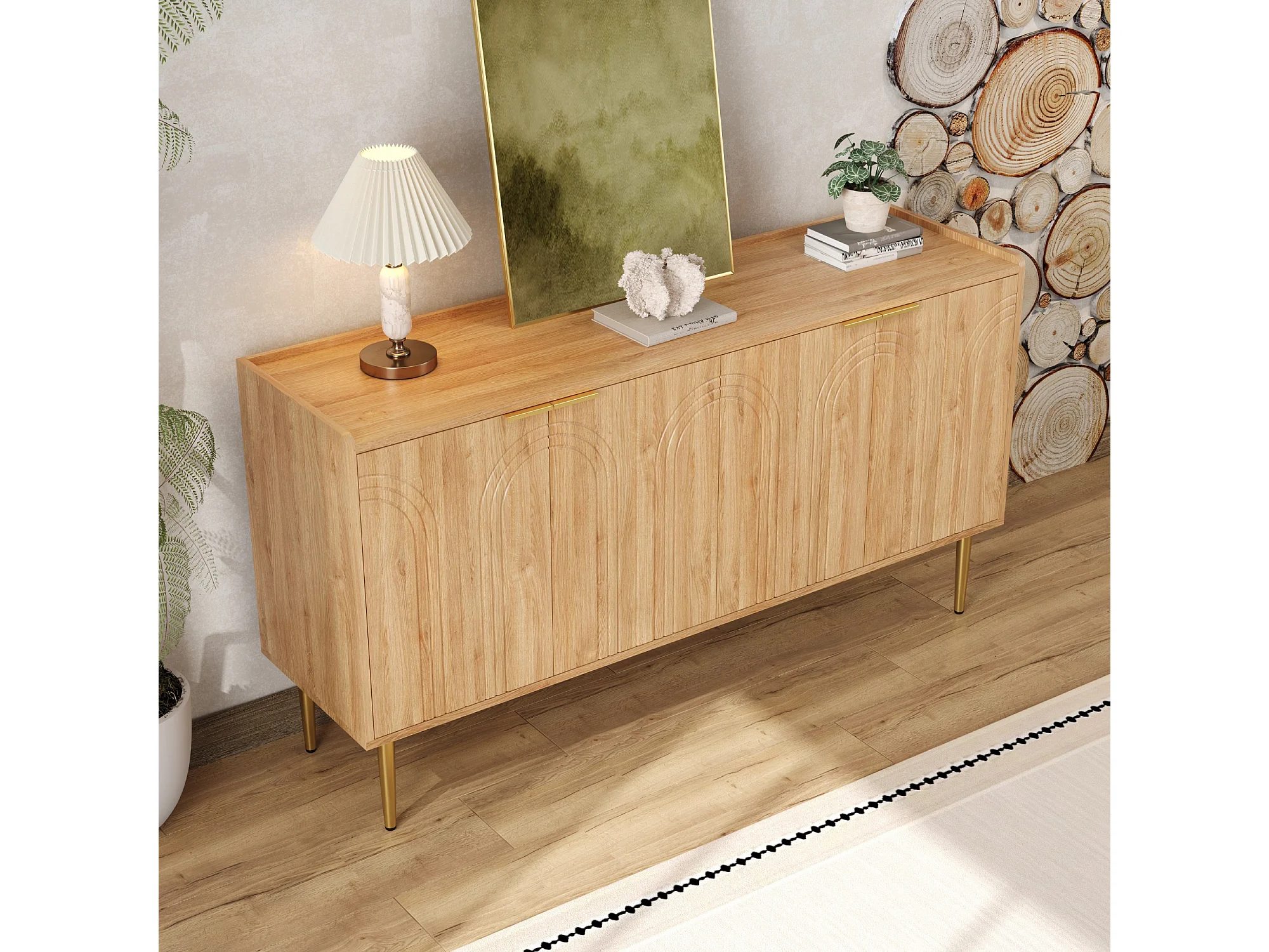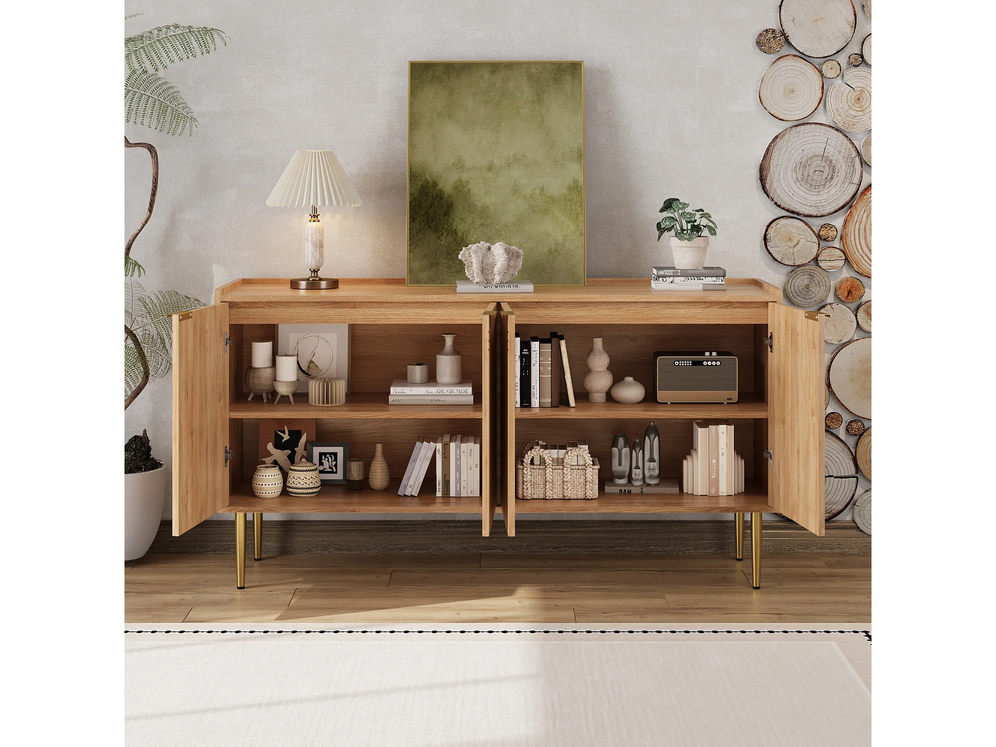 Buffet moderne 140x40x72 cm - 4 portes - Finition bois - Étagères réglables - Pieds en métal - MDF - Naturel
