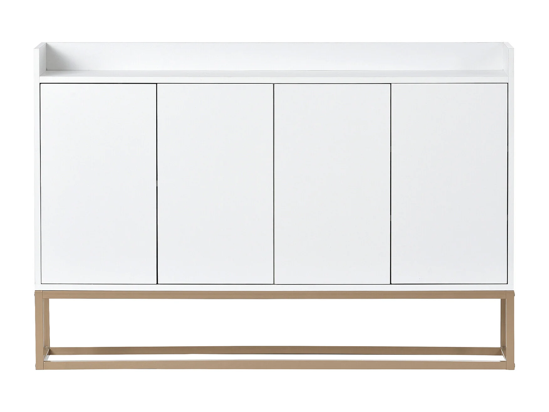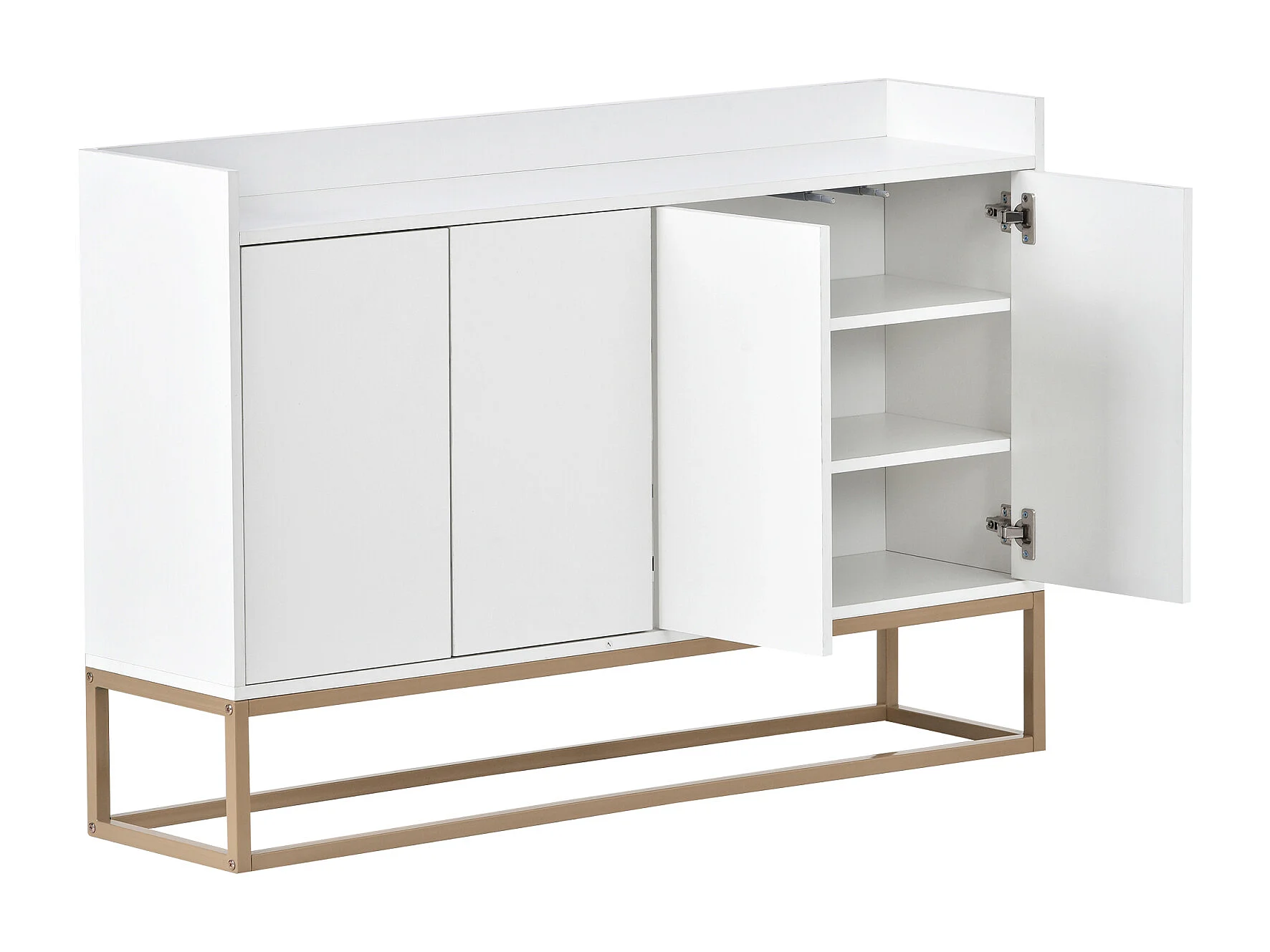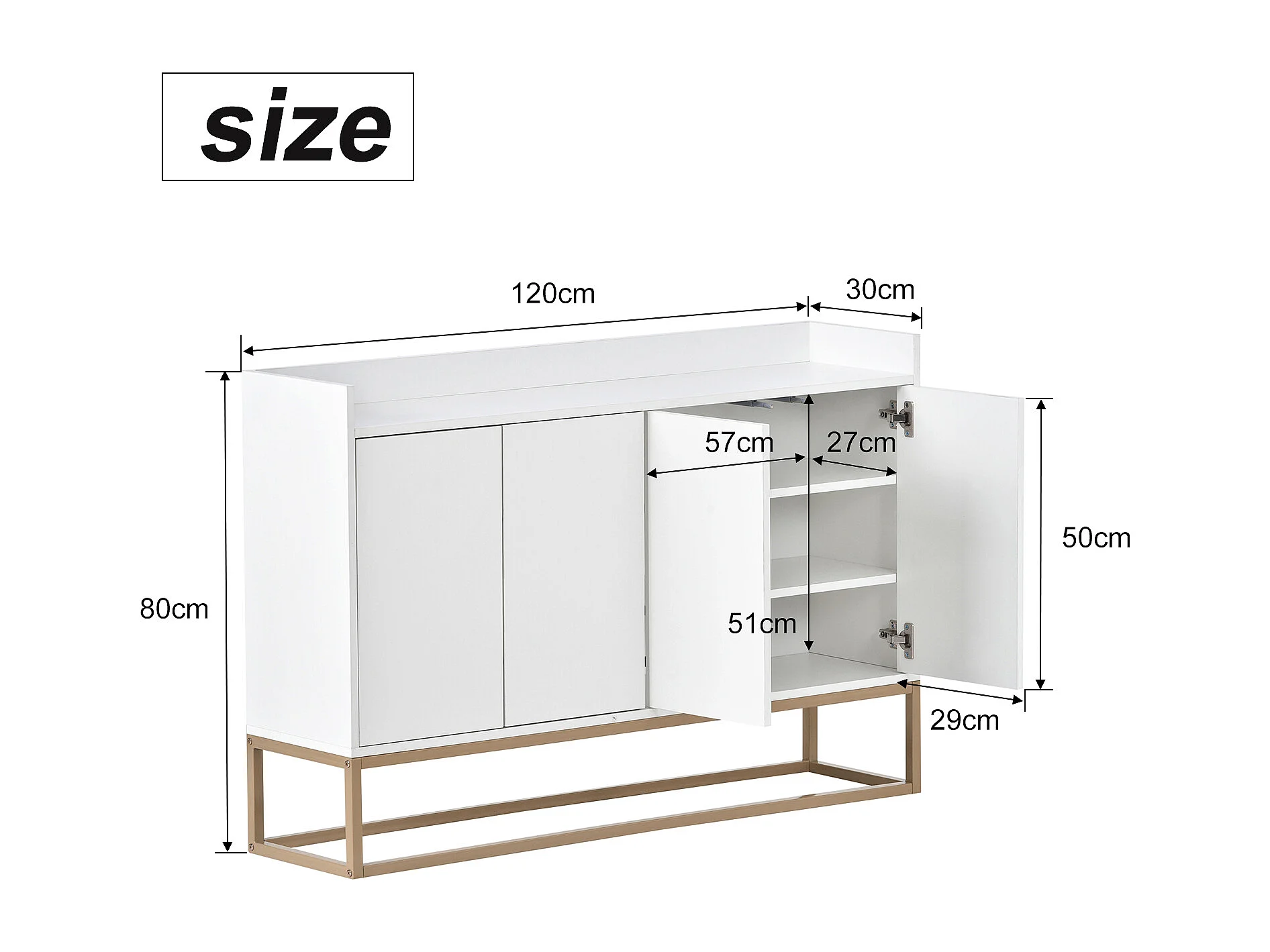 Buffet moderne minimaliste avec 4 portes et cadre en métal pour salle à manger, salon, cuisine,Blanc,120×30×80cm