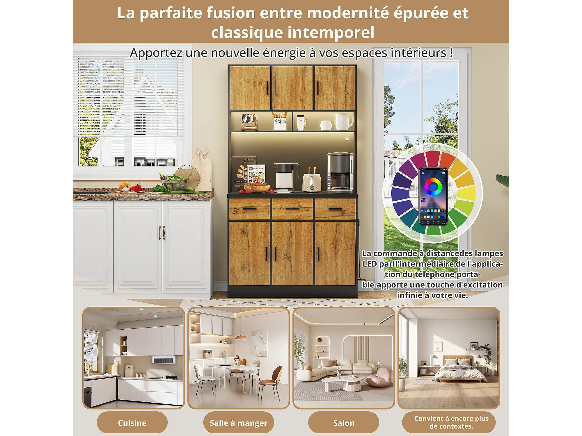 Buffet multifonction 100×40×180 cm avec LED, tiroirs, étagères réglables, pour salon,cuisine,Natural