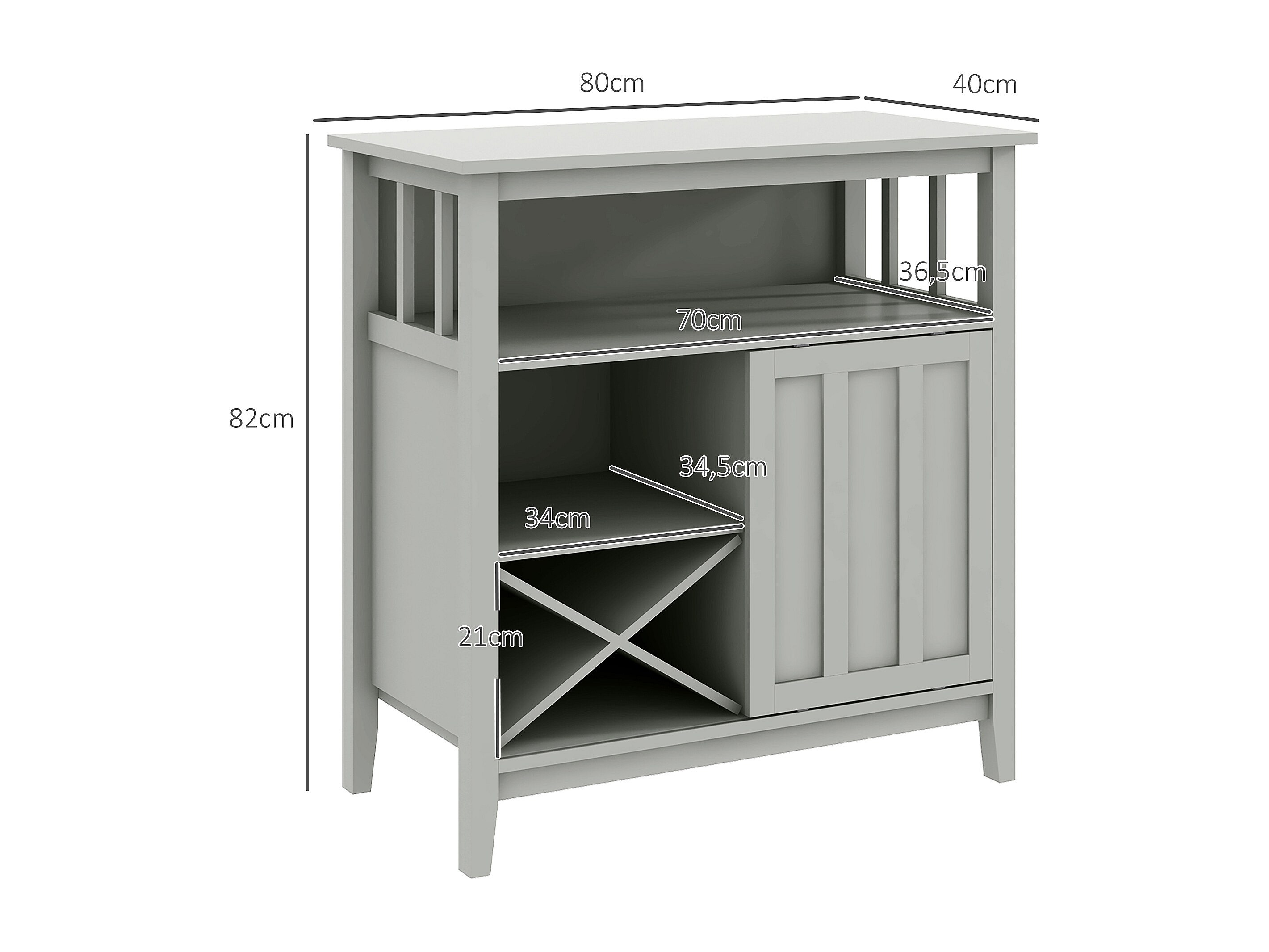 Buffet porte coulissante 2 étagères casier à bouteilles niche MDF gris clair