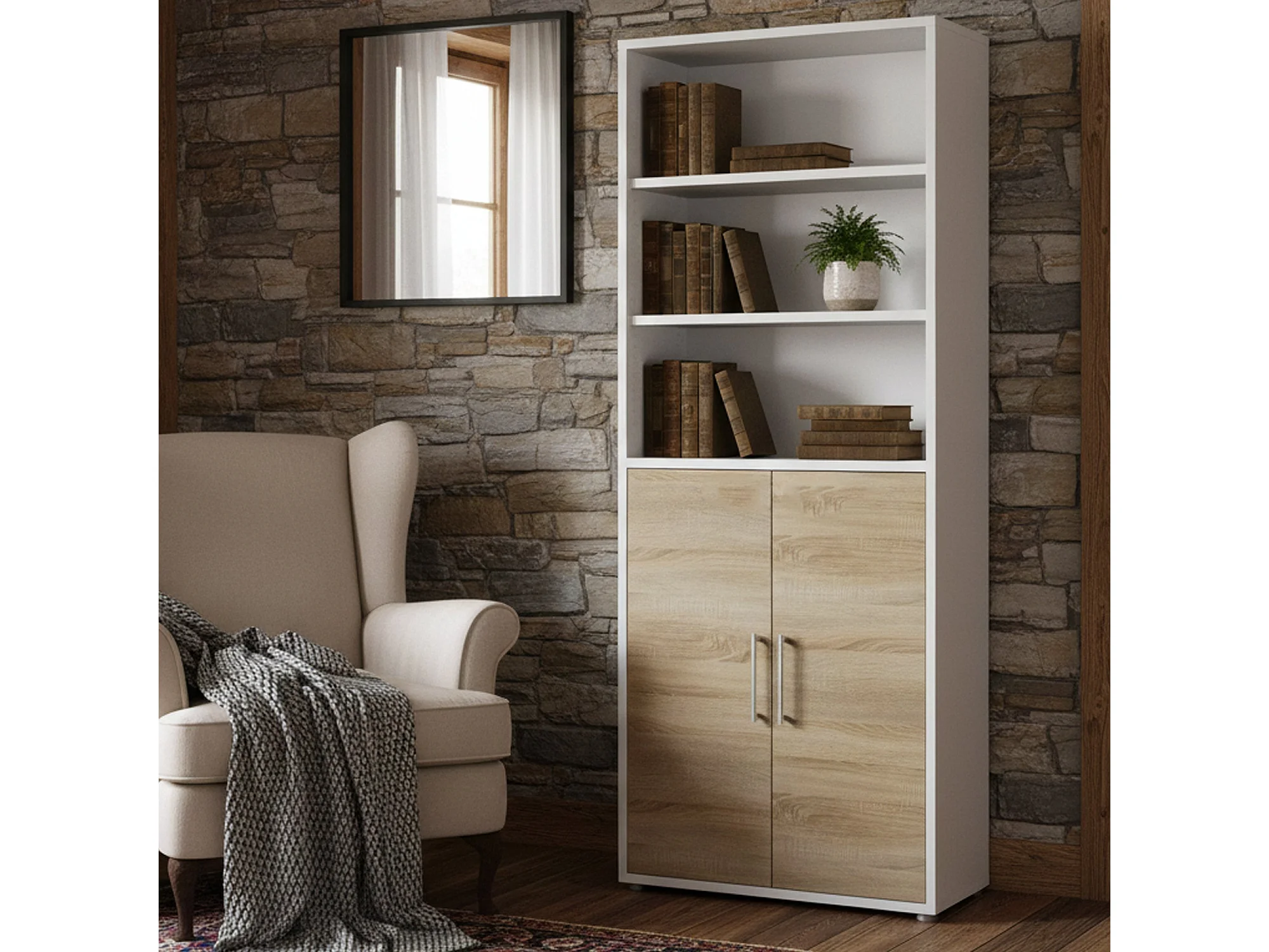 Buffet Valsesia, Buffet du salon, Commode de salon, Garde-manger de cuisine, 89x40 h222 cm, Blanc et chêne