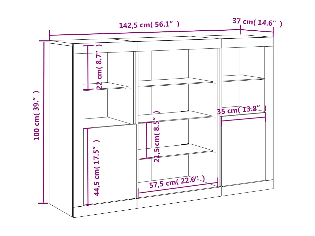 Buffets avec lumières LED 3 pcs blanc bois d'ingénierie