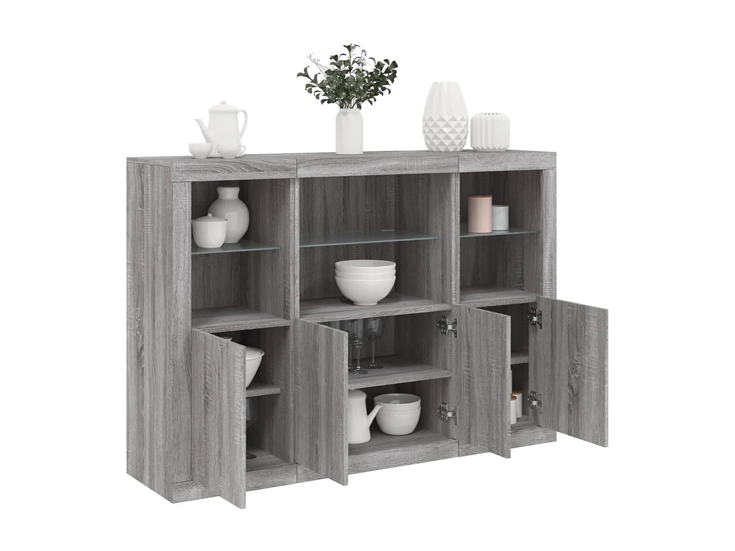 Buffets avec lumières LED 3 pcs sonoma gris bois d'ingénierie