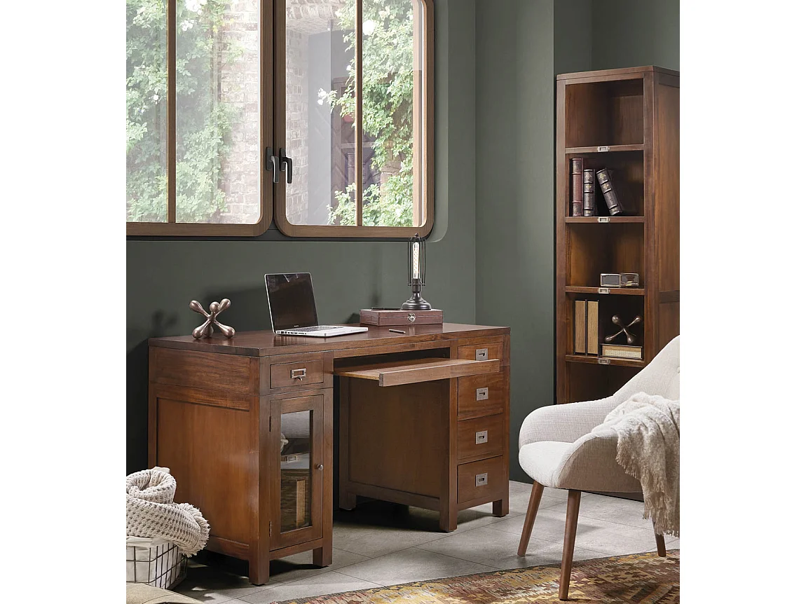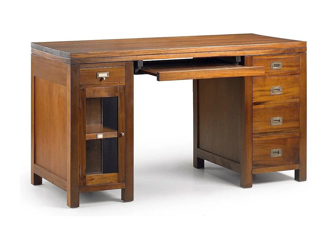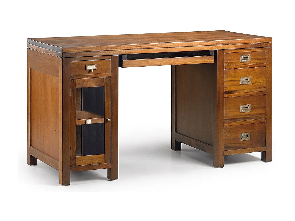 Bureau 5 tiroirs 1 porte en bois d'acajou massif FALKANE