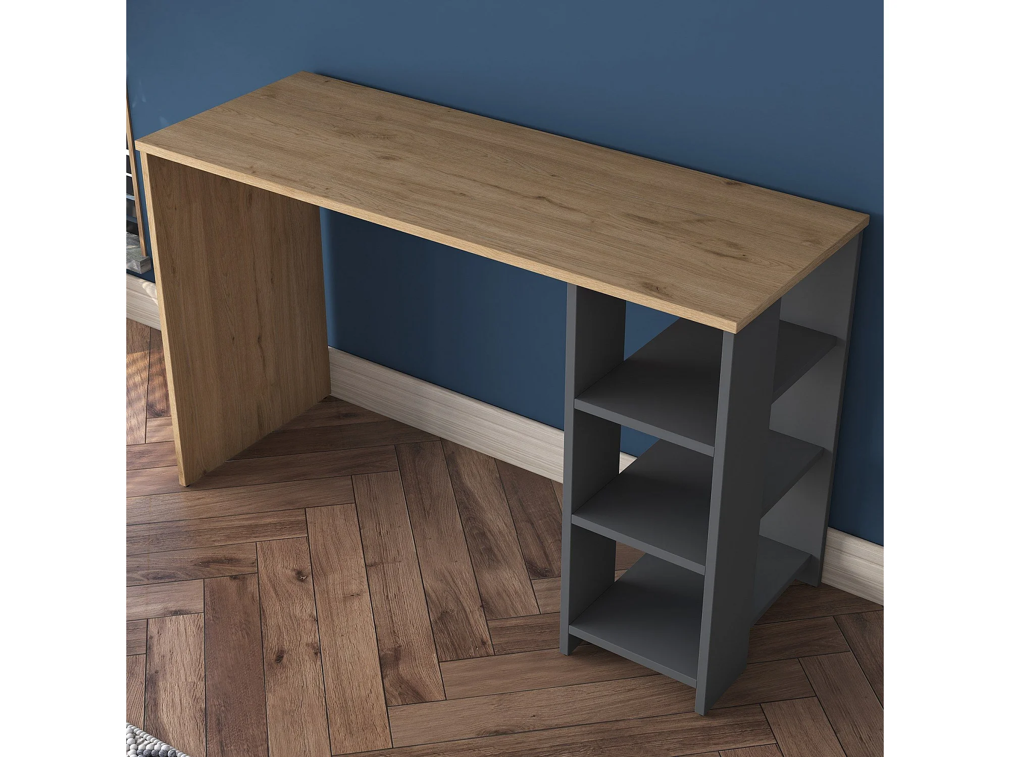 Bureau avec étagère Libanius L120cm Bois foncé et Anthracite