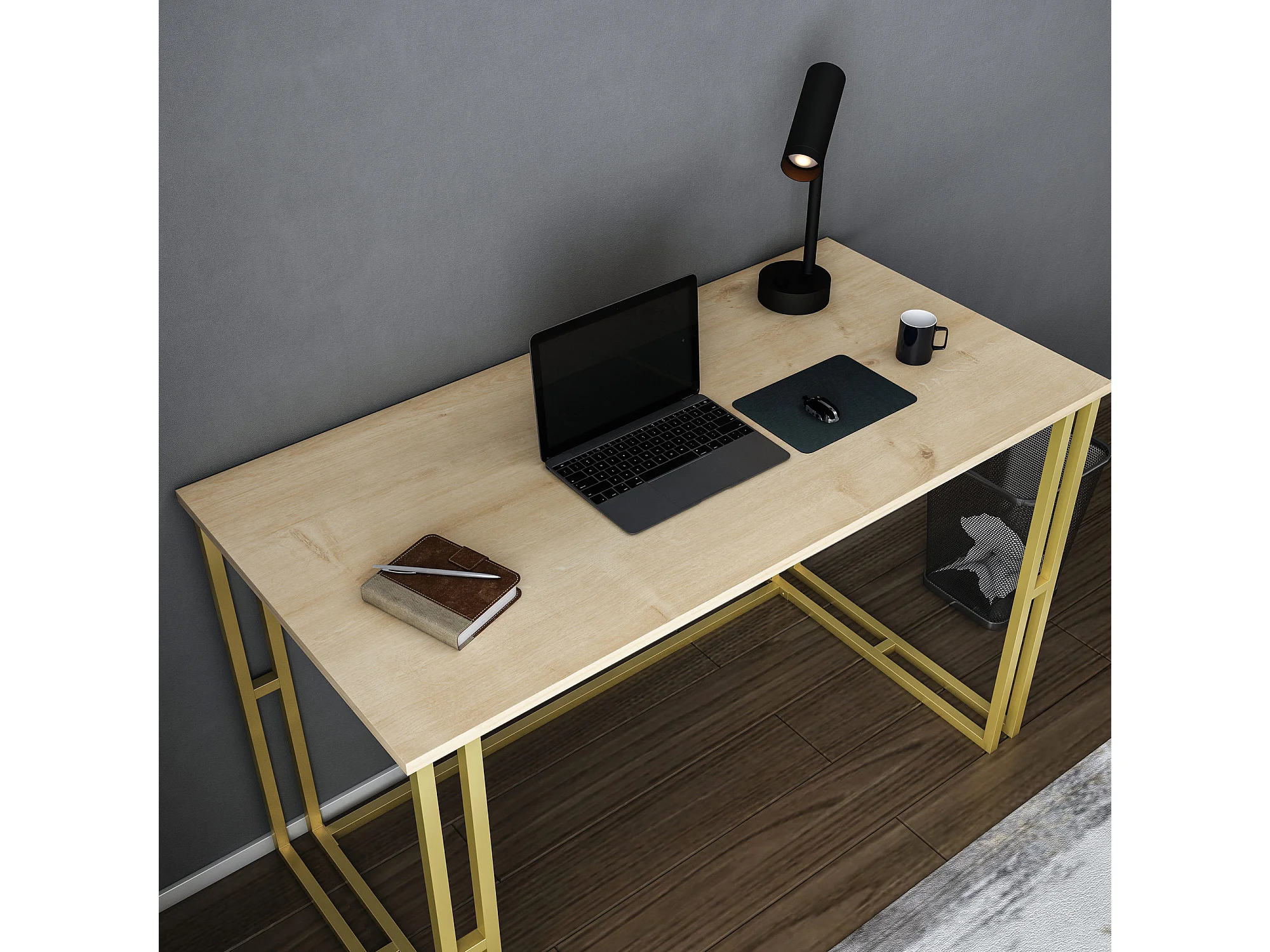 Bureau bois chêne clair et métal doré Kinoa 120cm