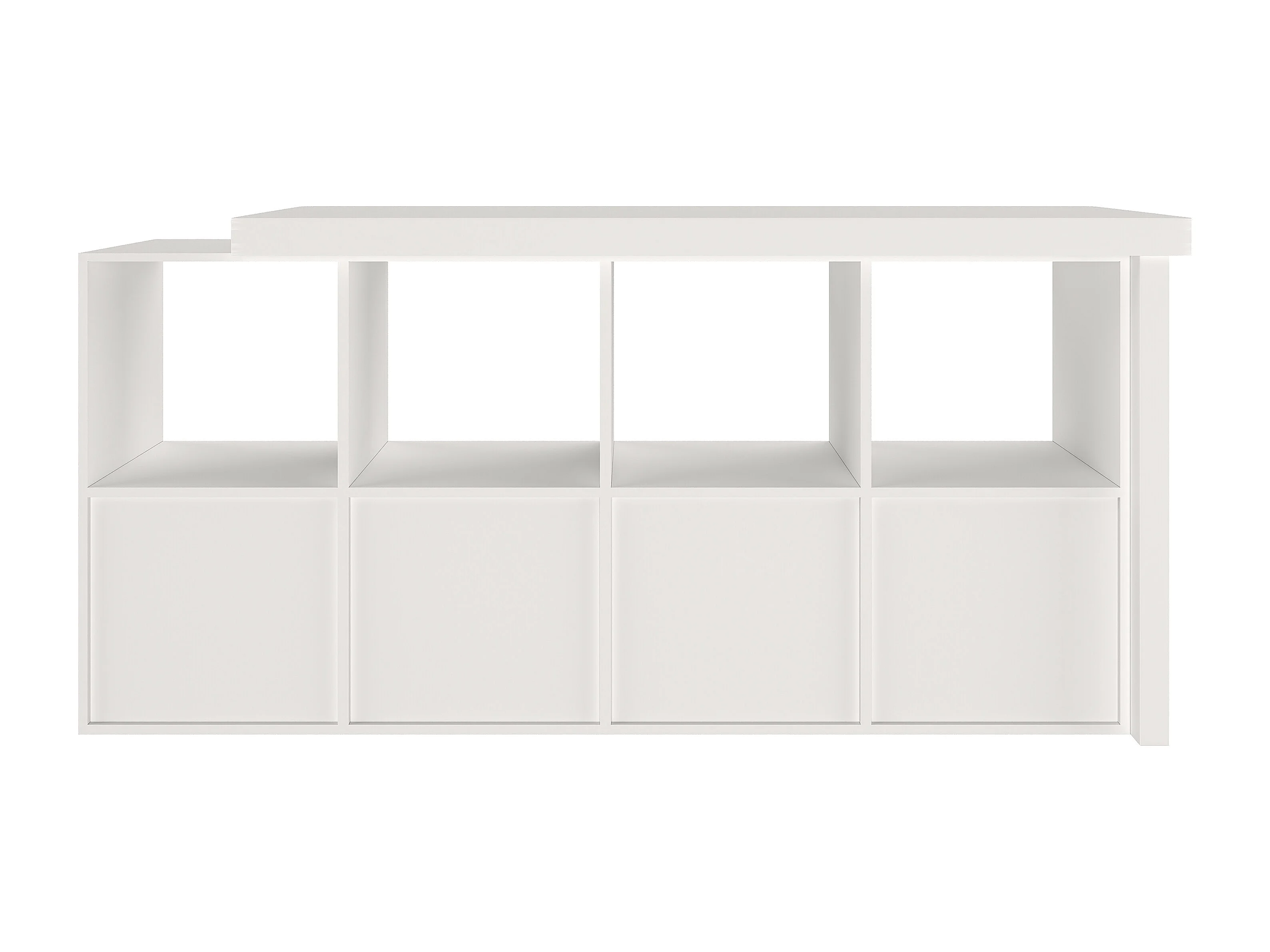 Bureau d'angle pivotant - 4 compartiments et 4 tiroirs - Plateau pivotant à 360° - Plateau et pieds renforcés - MDF - Blanc