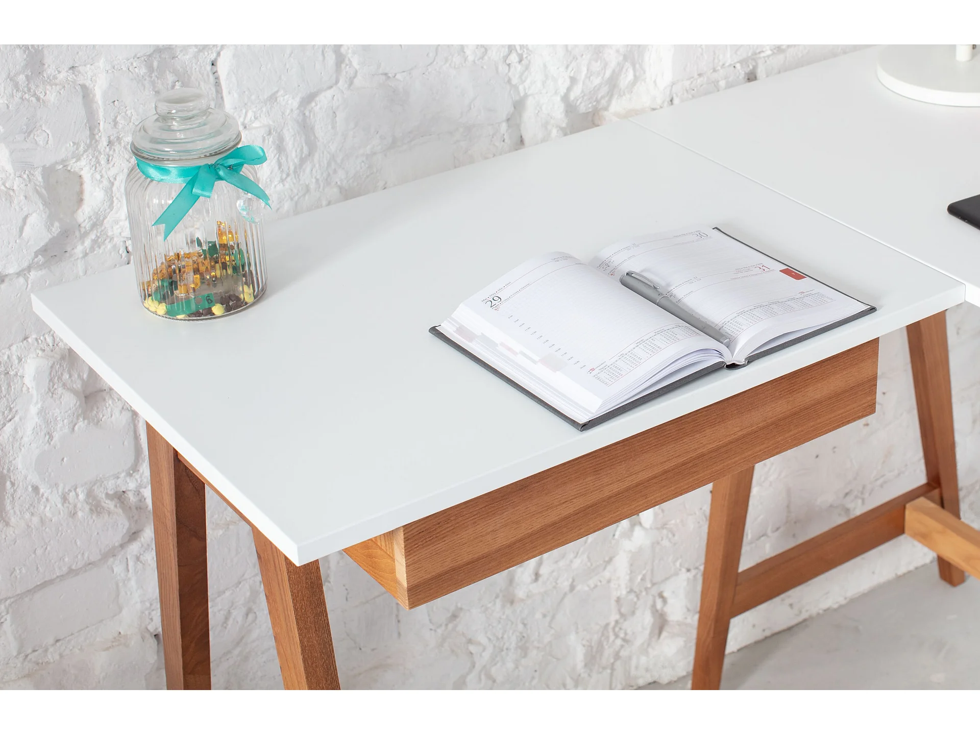 Bureau d'angle avec tiroir 115 x 85 cm Luka Rose Poudré | Pieds Chêne | Côté droit