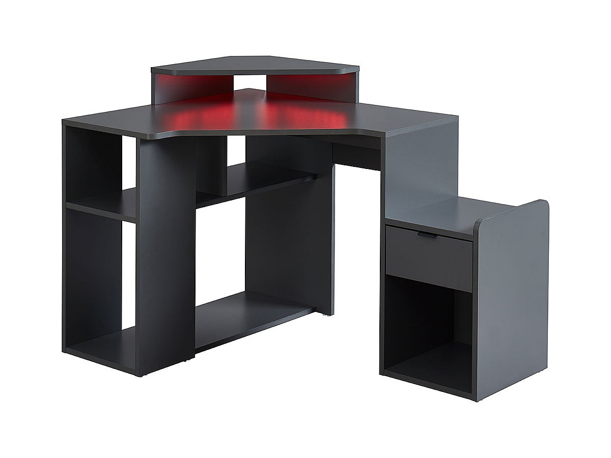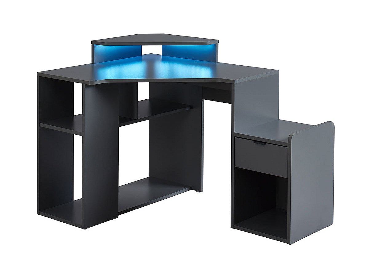 Bureau d'angle gamer XANDER - Avec rangements et LEDs - MDF - Gris