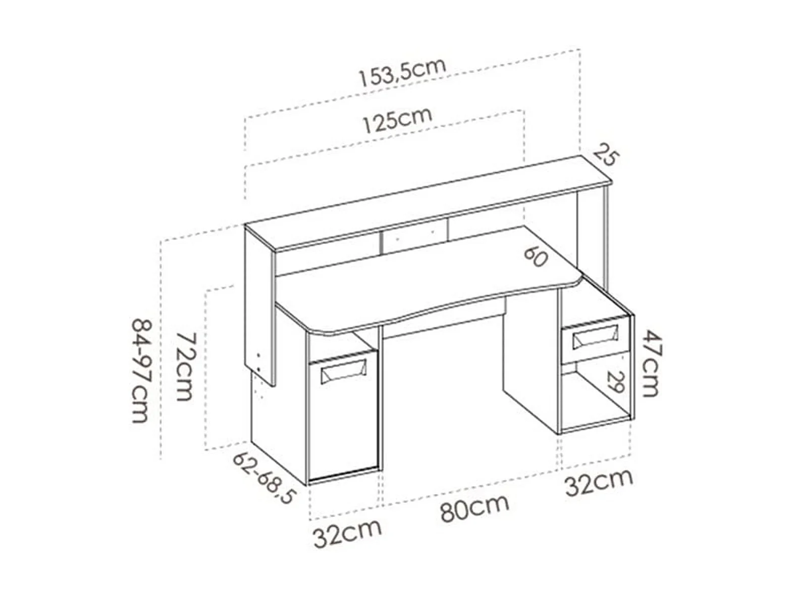 Bureau gaming led bureau gamer professionnel d'ordinateur informatique avec étagère de moniteur réglable 180x75x73cm