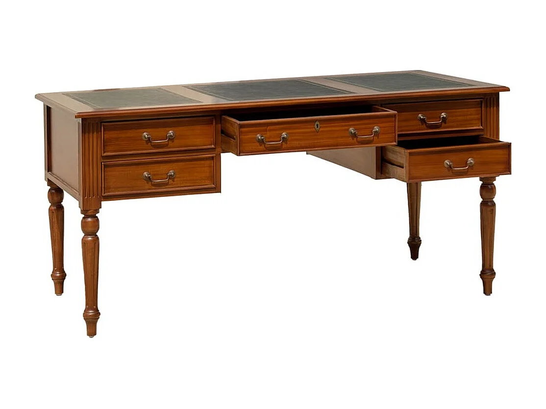 Bureau en bois massif d'acajou 5 tiroirs CASTLE 180cm