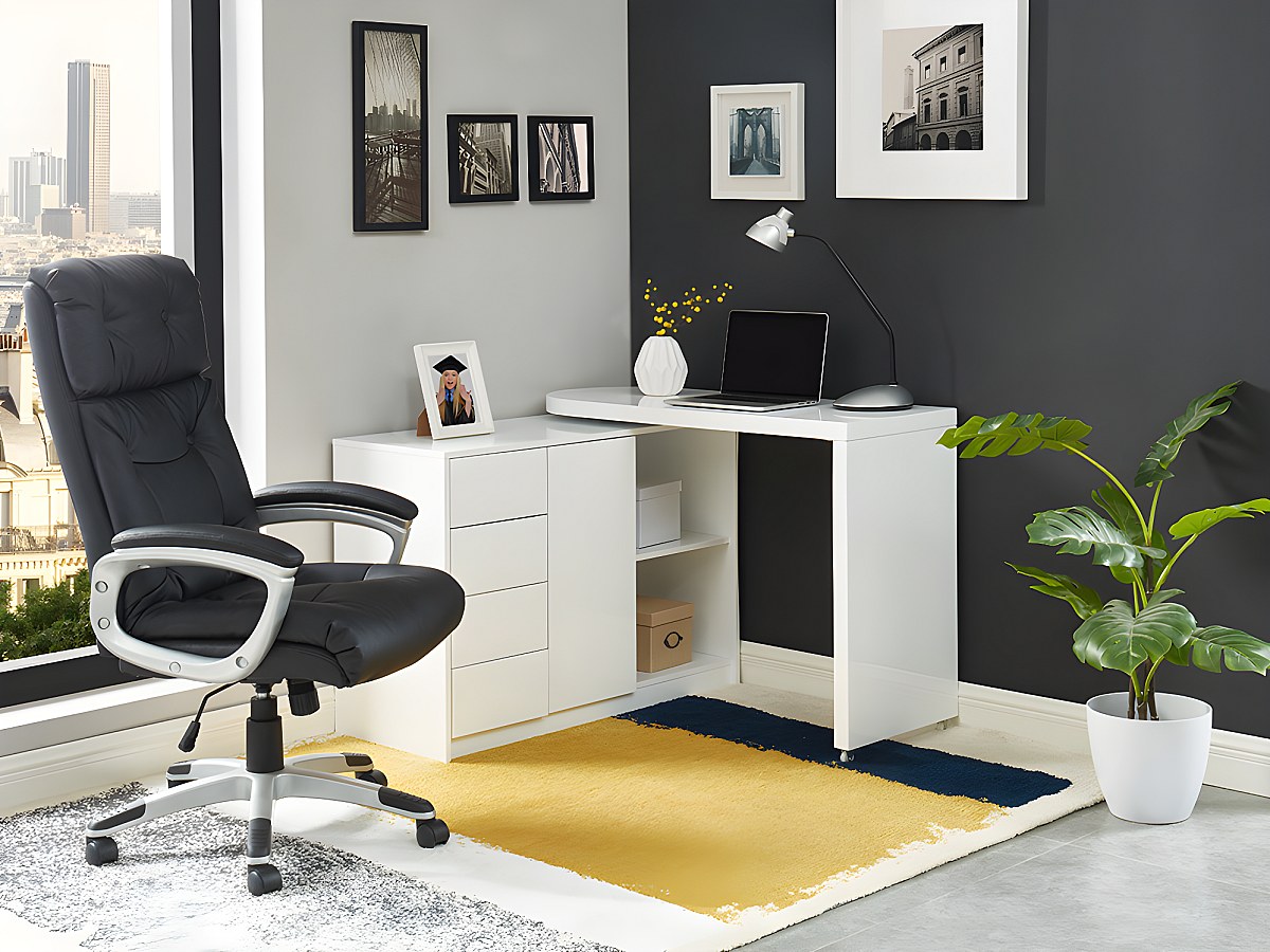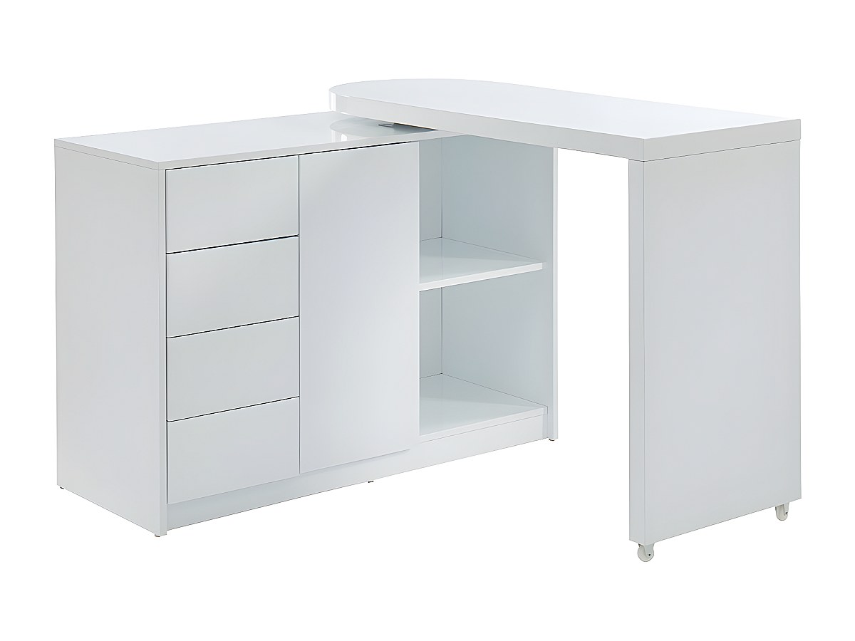 Bureau extensible PAVEL - MDF laqué blanc - Plateau pivotant 360°