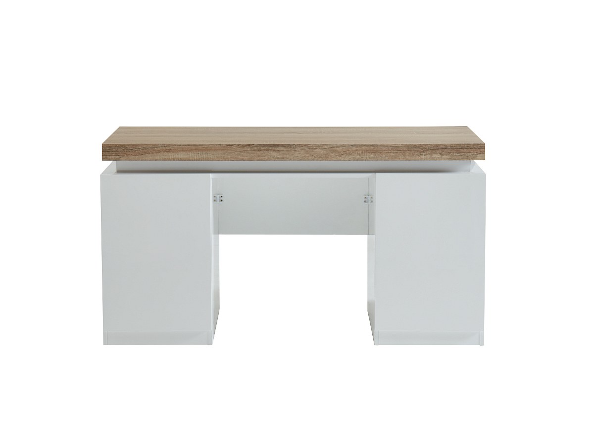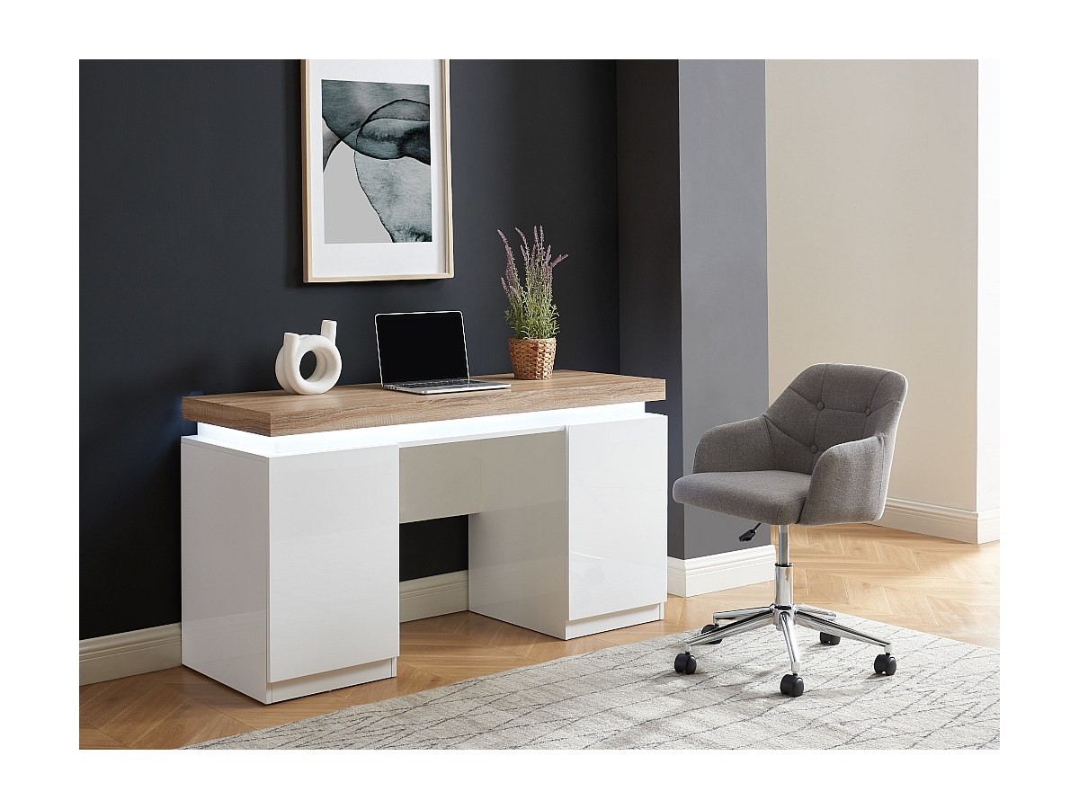 Bureau HALO avec rangements - MDF laqué - Avec LEDs - Blanc et Chêne