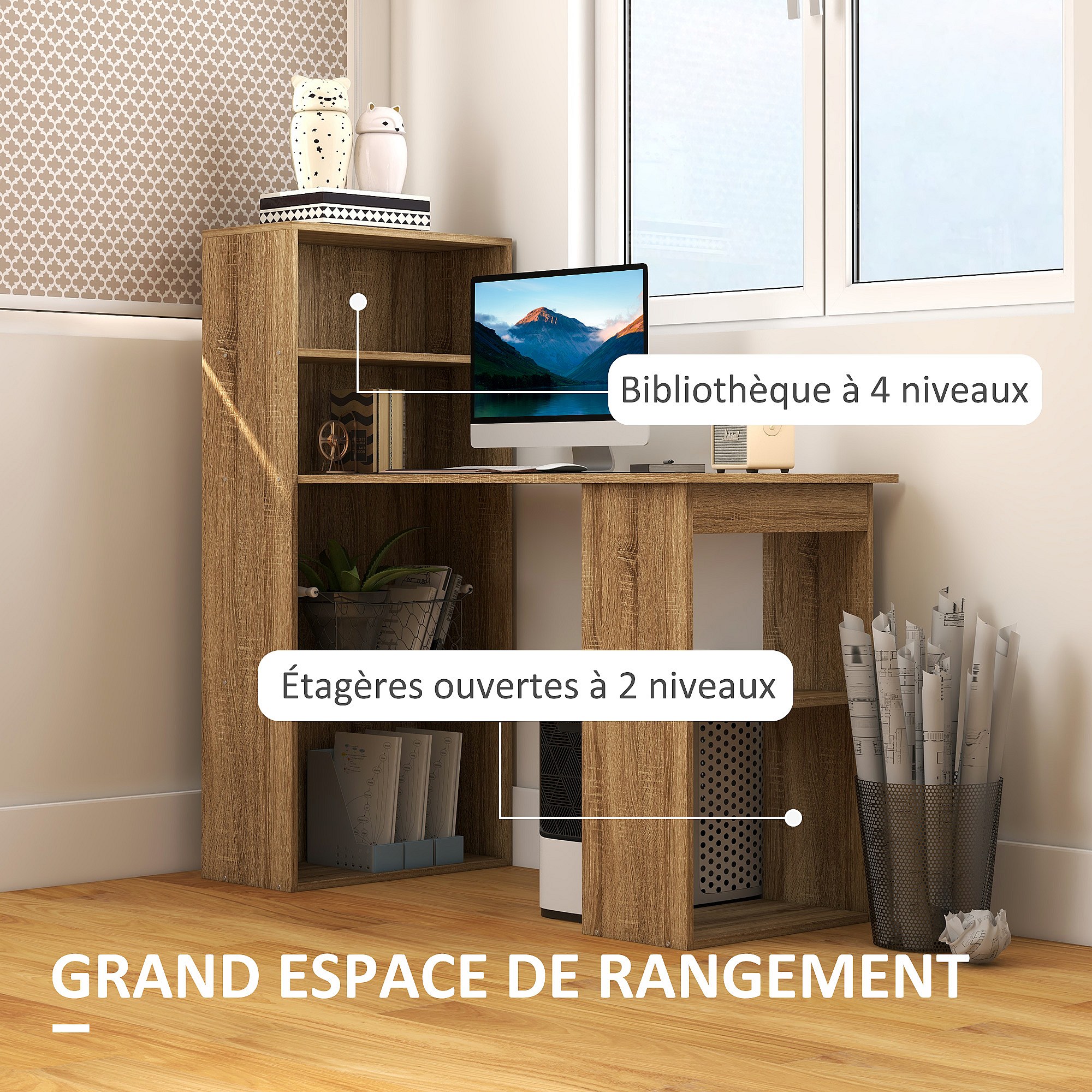 Bureau informatique 120L x 55l x 120H cm bibliothèque adjacente multi-rangements bois chêne
