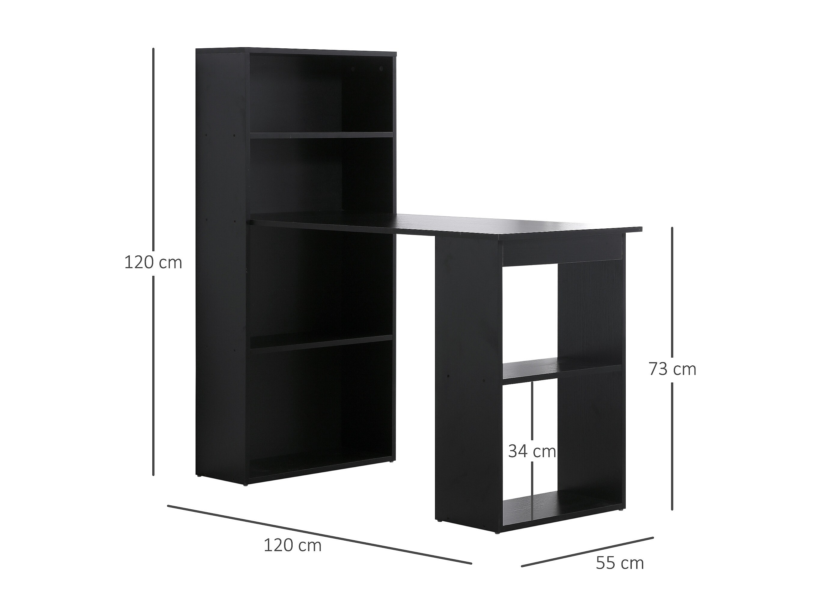 Bureau informatique 120L x 55l x 120H cm bibliothèque adjacente multi-rangements noir