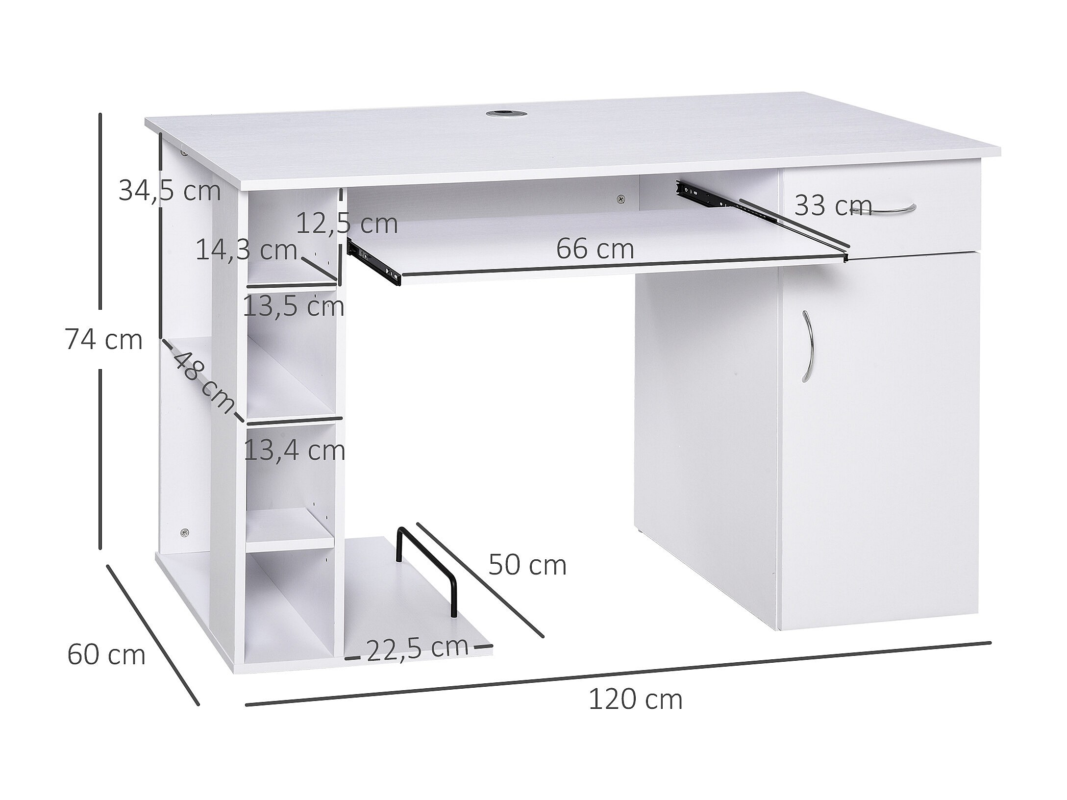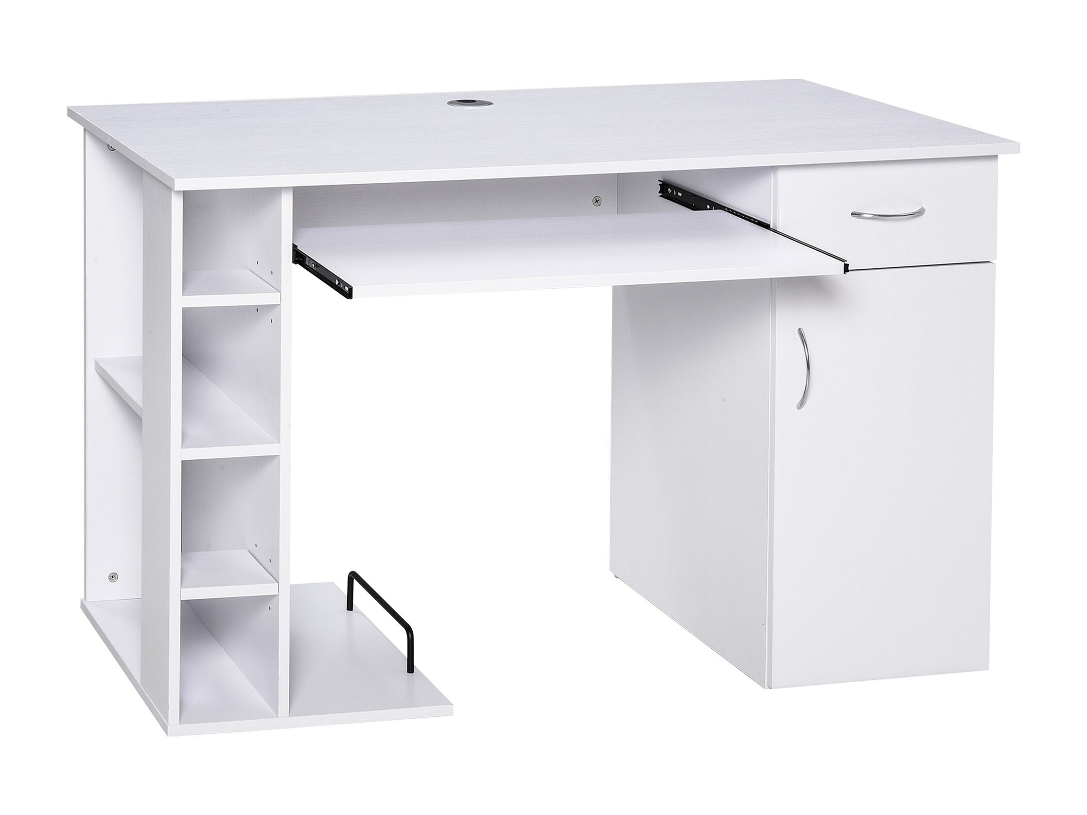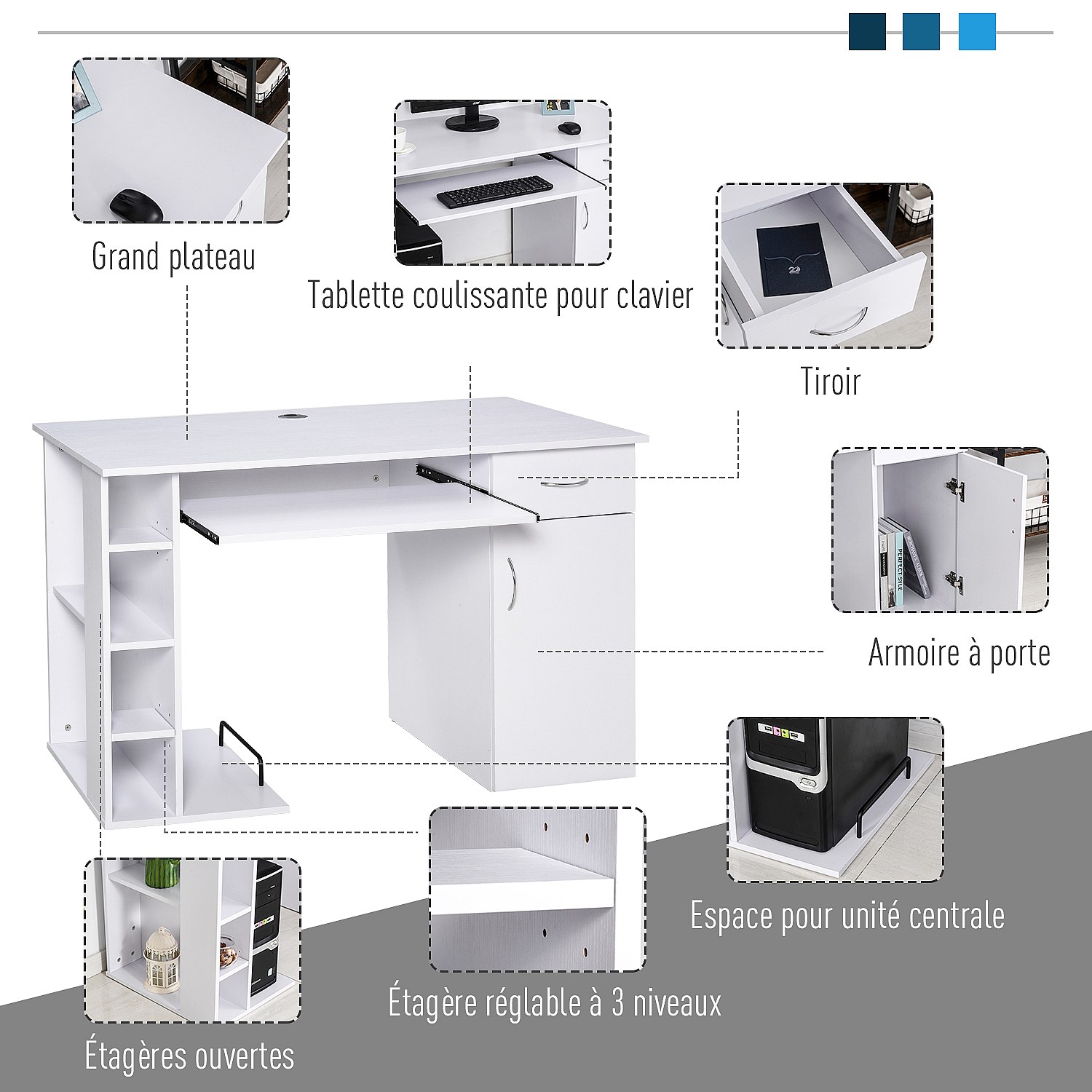 Bureau informatique multimédia multi-rangements avec étagère tiroir tablette clavier MDF 120 x 60 x 74 cm blanc