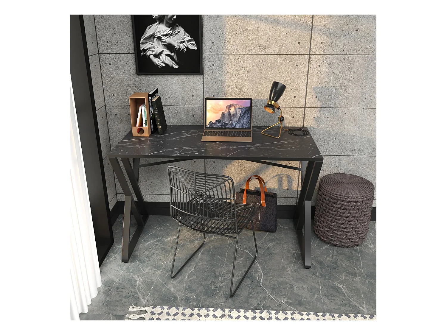 Bureau style industriel Powa 120cm Noir et Noir Effet marbre