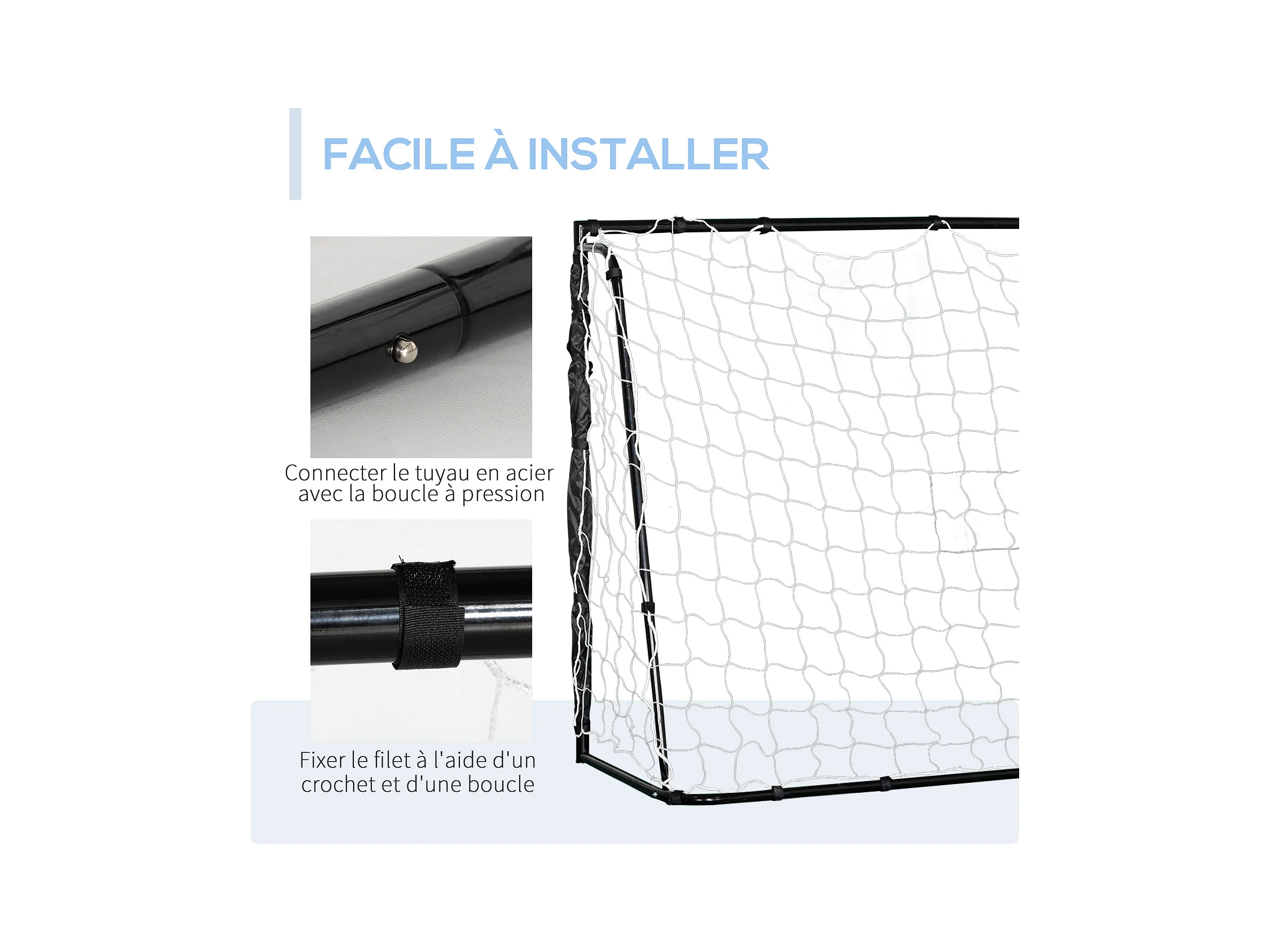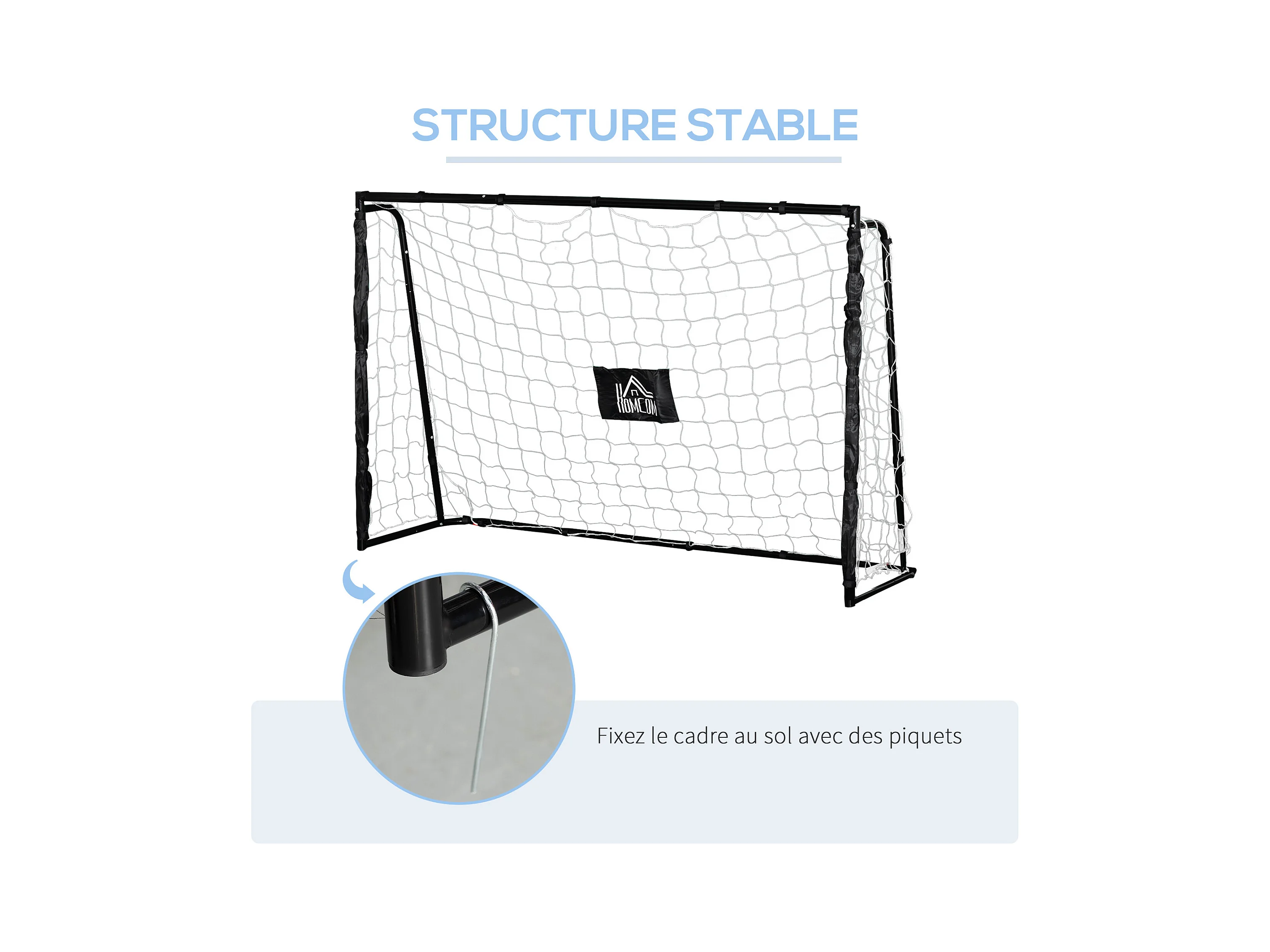 But de football - cage de foot - but futsal dim. 186L x 62l x 123H cm - châssis métal filet PE - piquets & outil inclus - noir