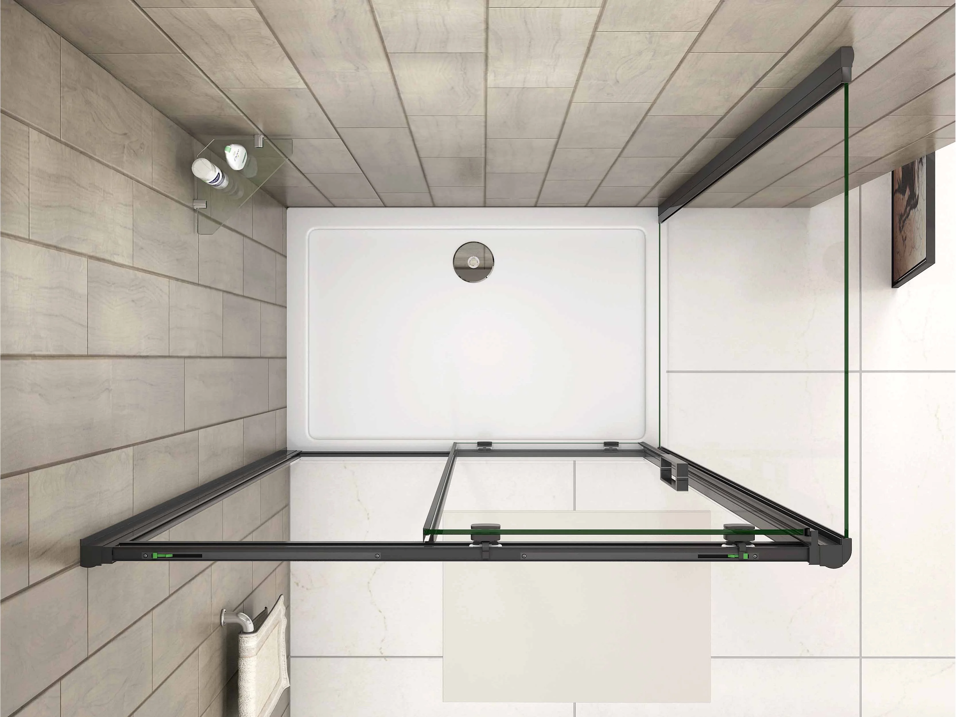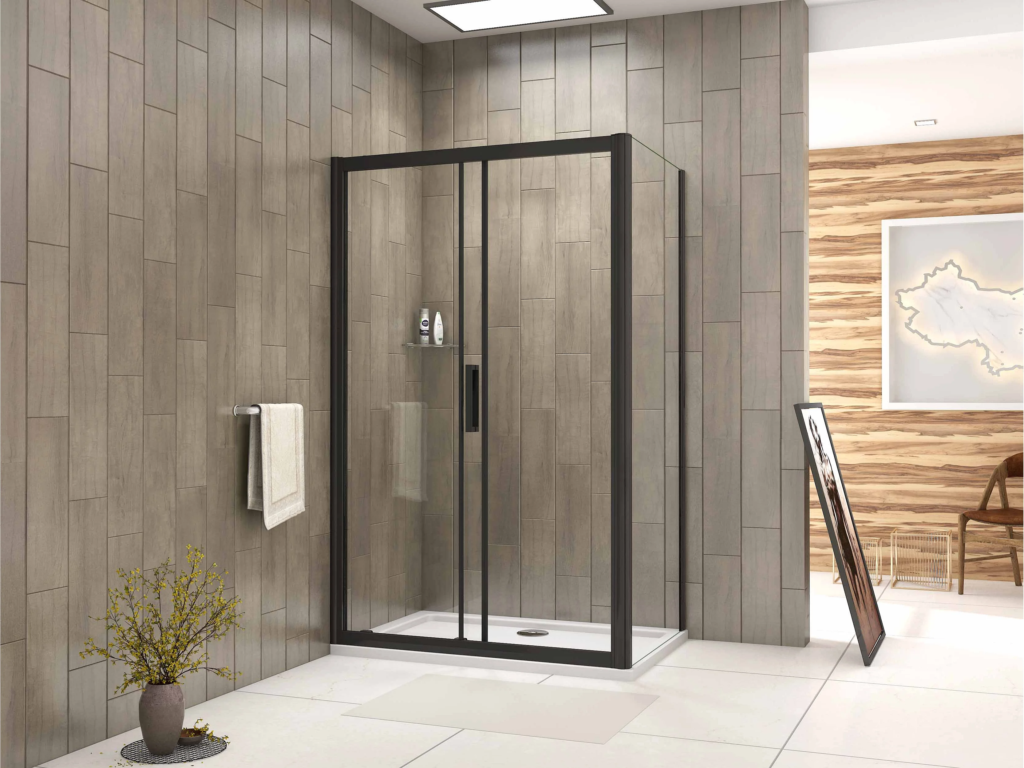 Cabine de Douche avec Porte à Amortisseur Douce en Verre Anticalcaire 8mm – Noir Mat, 160x90x195cm