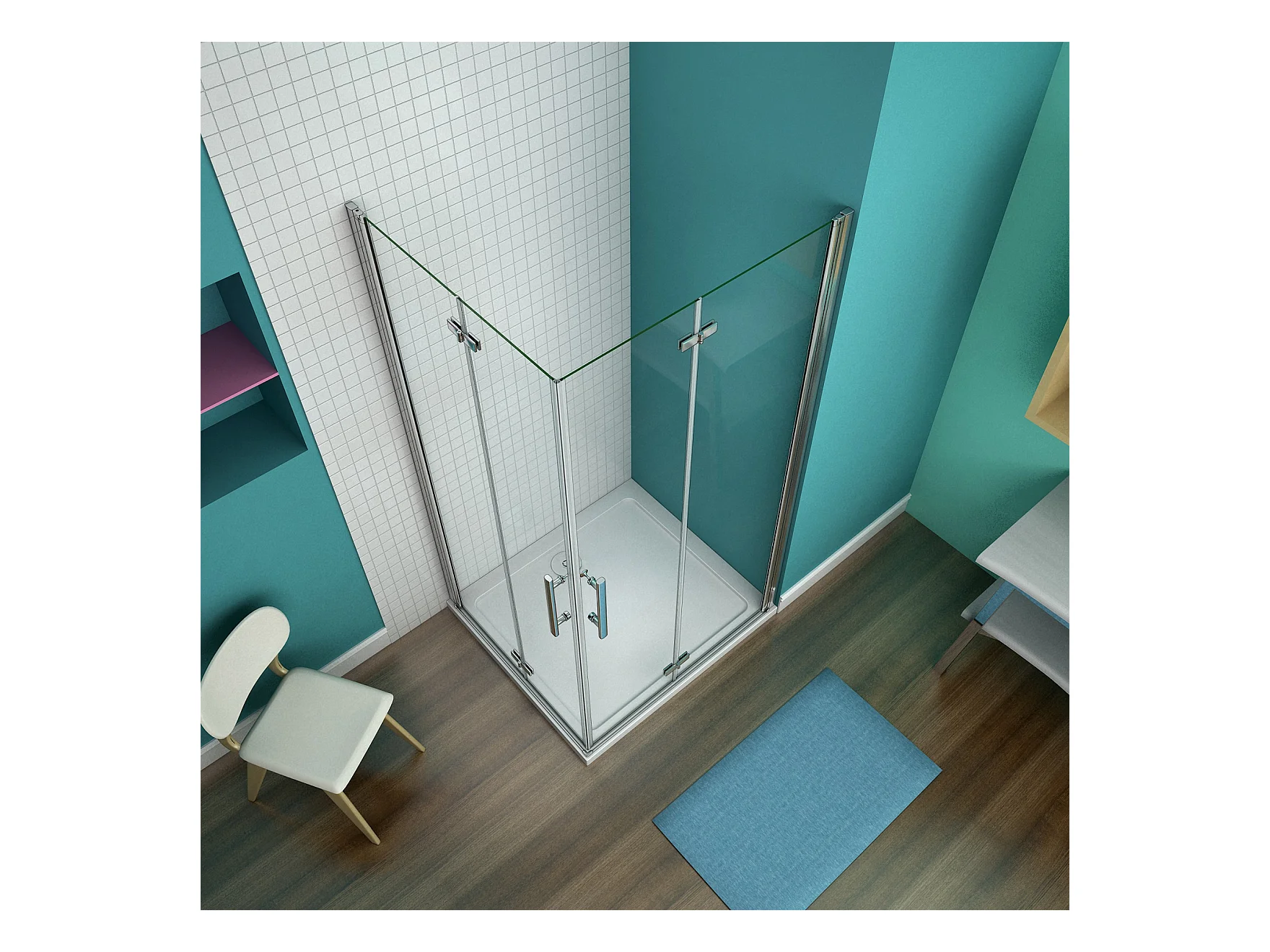 Cabine de douche pivotante et pliante 80x80x195cm en 6mm verre securit anticalcaire, poignée en inox