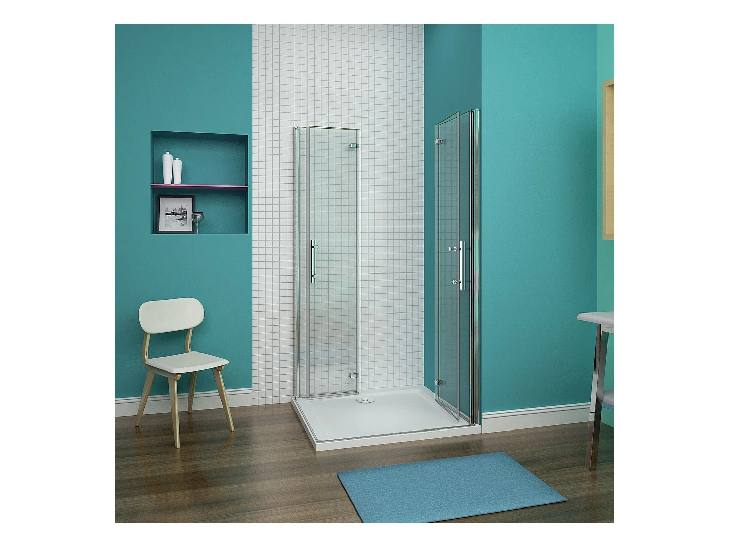 Cabine de douche pivotante et pliante 76x70x195cm en 6mm verre securit anticalcaire, poignée en inox