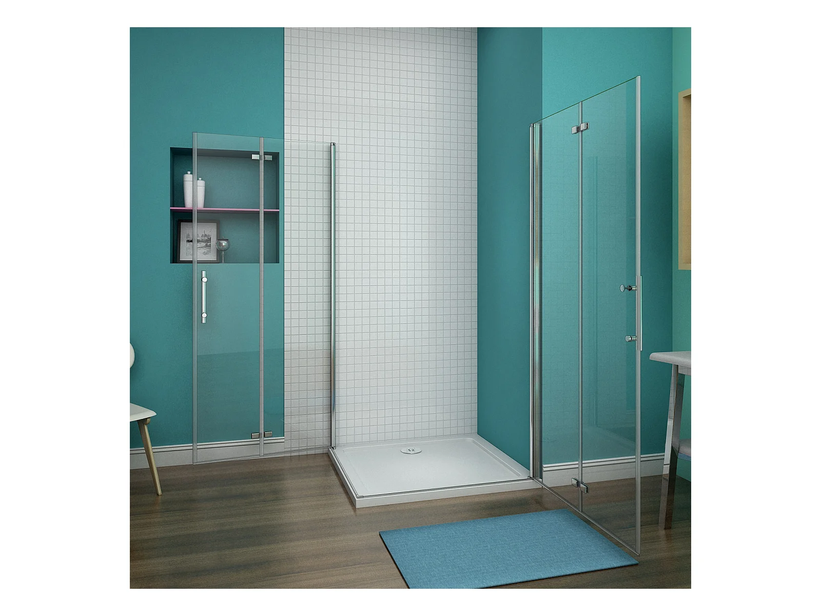Cabine de douche pivotante et pliante 110x80x195cm en 6mm verre securit anticalcaire, poignée en inox